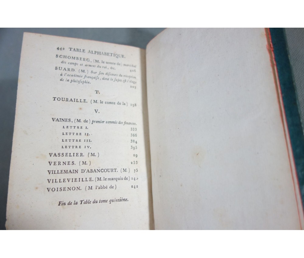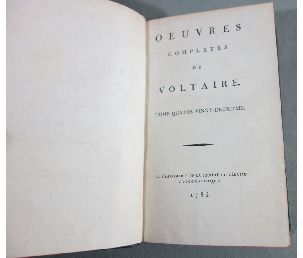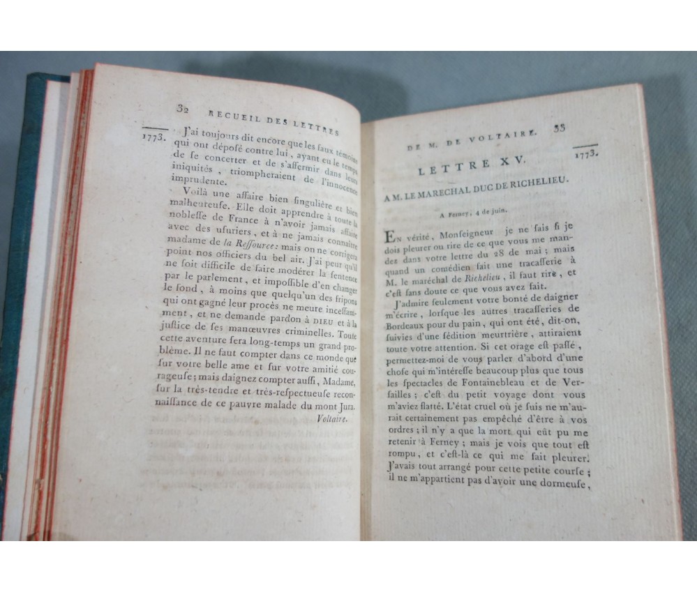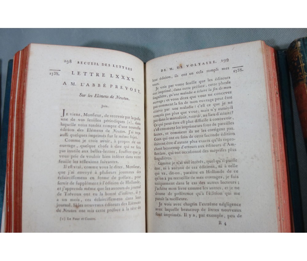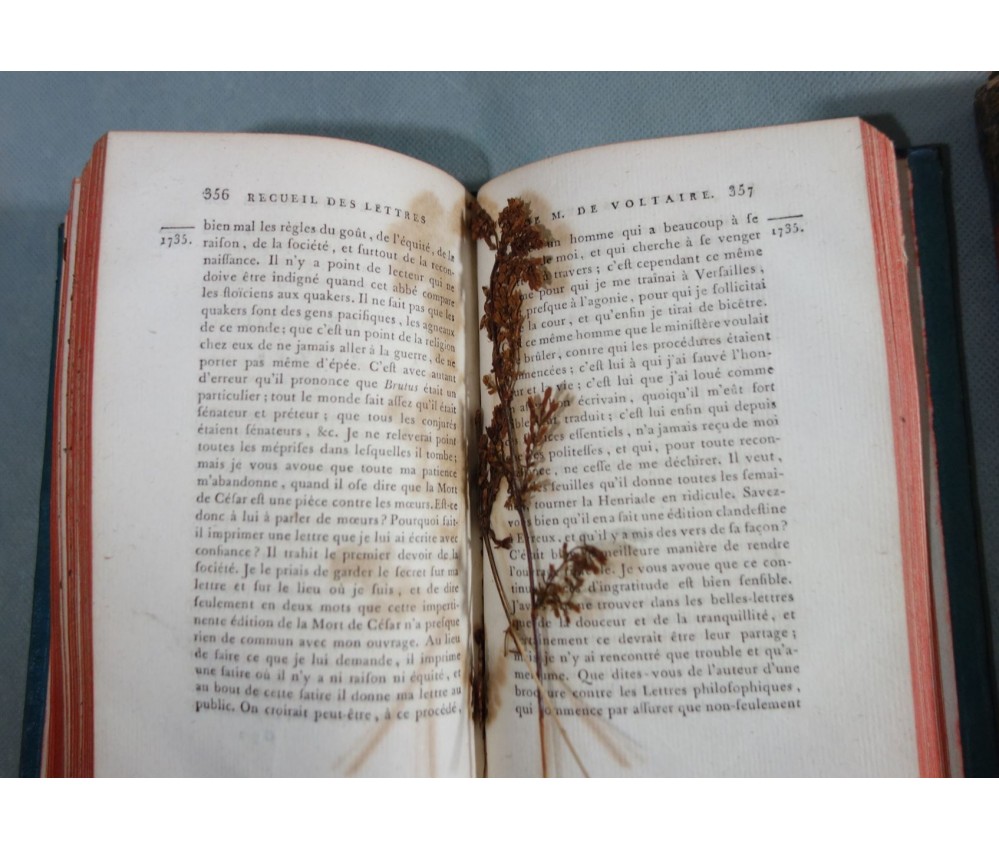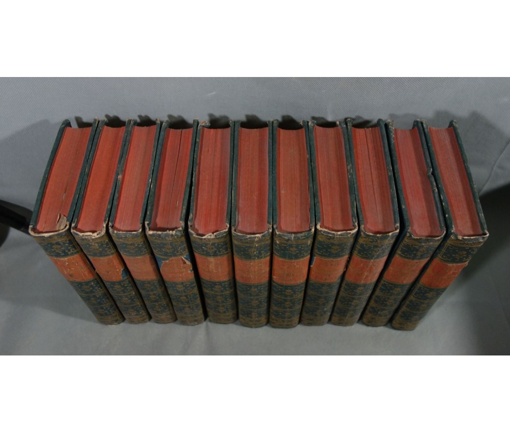 Voir nos visuels, rares et beaux exemplaires bien reliés, ensemble incomplet de la correspondance inédite (faisant partie des oeuvres complètes de Voltaire en 92 volumes, cf. BRUNET V-1353, Cette édition célèbre était la plus complète et la mieux ordonnée... on y a donnée pour la 1ère fois la volumineuse correspondance de l'auteur...). Ici sont vendu 11 volumes de lettres soit une bonne partie de l'immense correspondance (estimée à 15 000 lettres), correspondants innombrables et de tous bords, gens de lettres, nobles, dirigeants. (Edition de Khel) de l'imprimerie de la Société Littéraire Typographique, 1785. 11 petits In-8, jolies reliures demi-cuir bleues d'époque (usures des coins et coiffes, rides, frottements aux plats), dos lisses richement ornés, pièces de titres rouges (3 avec manque), intérieur sur papier vergé, plus ou moins jauni, taches et brunissures. Nombreux livres anciens et rares à découvrir dans notre librairie. Envoi rapide et soigné! (F10)