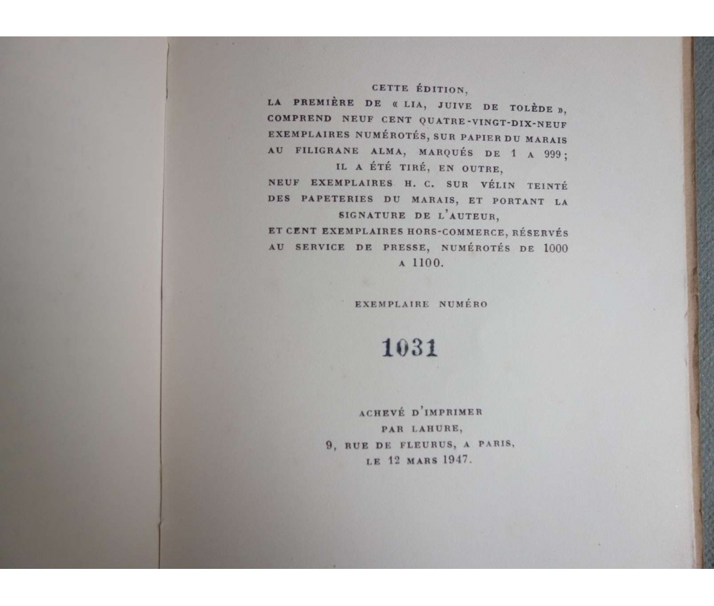 Voir nos visuels, 1/100 ex. numérotés du service de presse (n°1031, édition originale sur vélin Alma du Marais, Henri Lefebvre, 320p, 1947. Un portrait en frontispice et gravures in-texte de Maxime Juan. Livre in-8 broché, intérieur propre, dos à peine ridé, légère usure des coins. Envoi rapide et soigné! (F21)