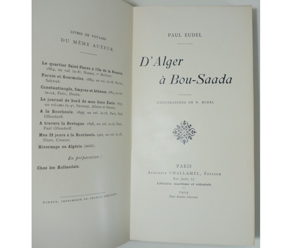 Voir nos visuels, 1ère édition sur papier fort, glacé, Paris, Augustin Challamel, Librairie maritime et coloniale, 224 pages, 1904. Nombreuses illustrations en noir de H. Eudel. In-8 étroit, broché, couverture imprimée sous papier cristal, intérieur très propre, non coupé, à peine bruni. Très bel et rare exemplaire. Envoi soigné! (D21)