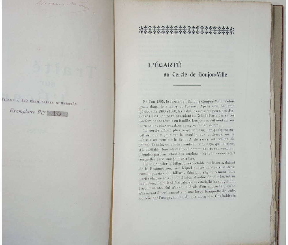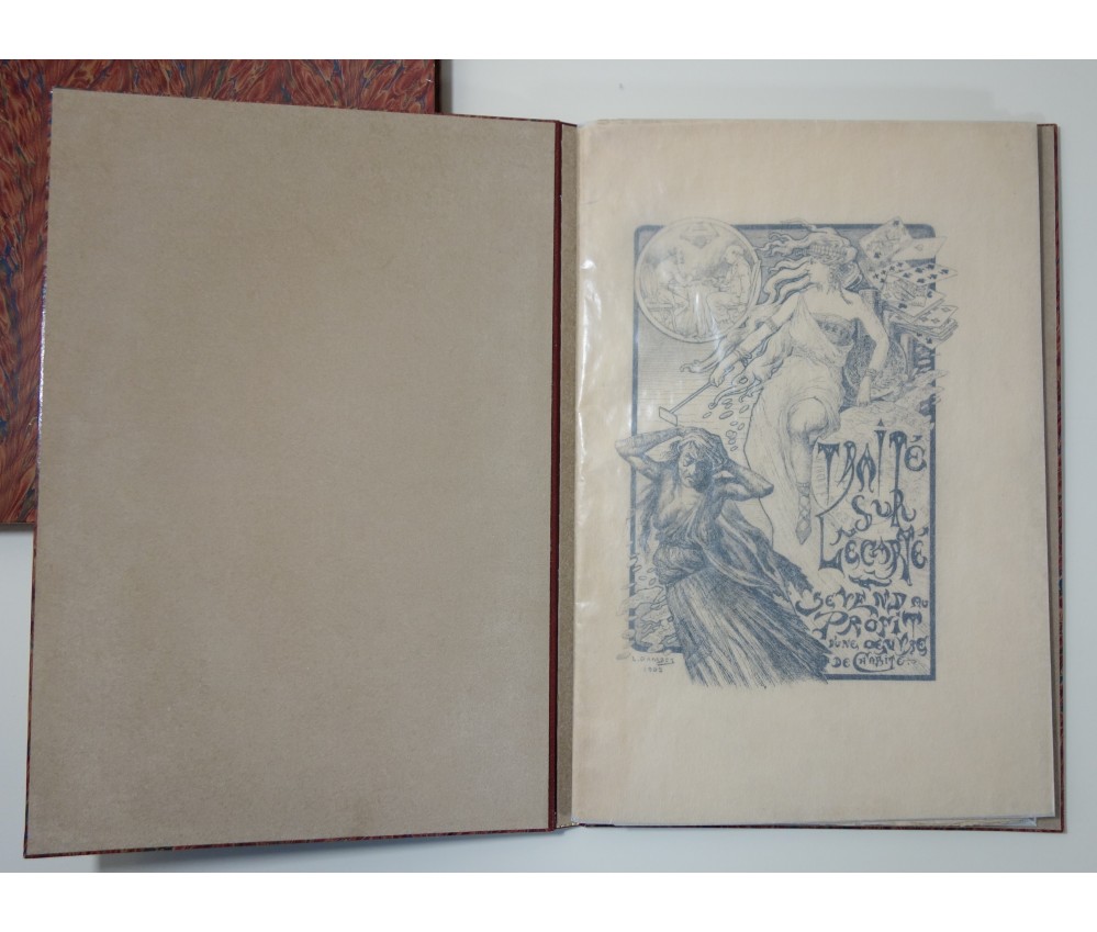 Voir nos visuels, très rare exemplaire numéroté sur un beau papier vergé, tirage limité à 120, A Chalon-sur-Saone, Imprimerie de E. Bertrand, 21 pages, sans date (1902). Très belle composition de Léon Gambey, style Art Nouveau. In-8 broché, couverture illustrée rempliée sous papier cristal, intérieur propre, (brunissement, petites taches). Chemise doublée en demi-chagrin et étui signés par A. Devauchelle. Très rare et bel exemplaire. Envoi rapide et soigné ! (H8)
