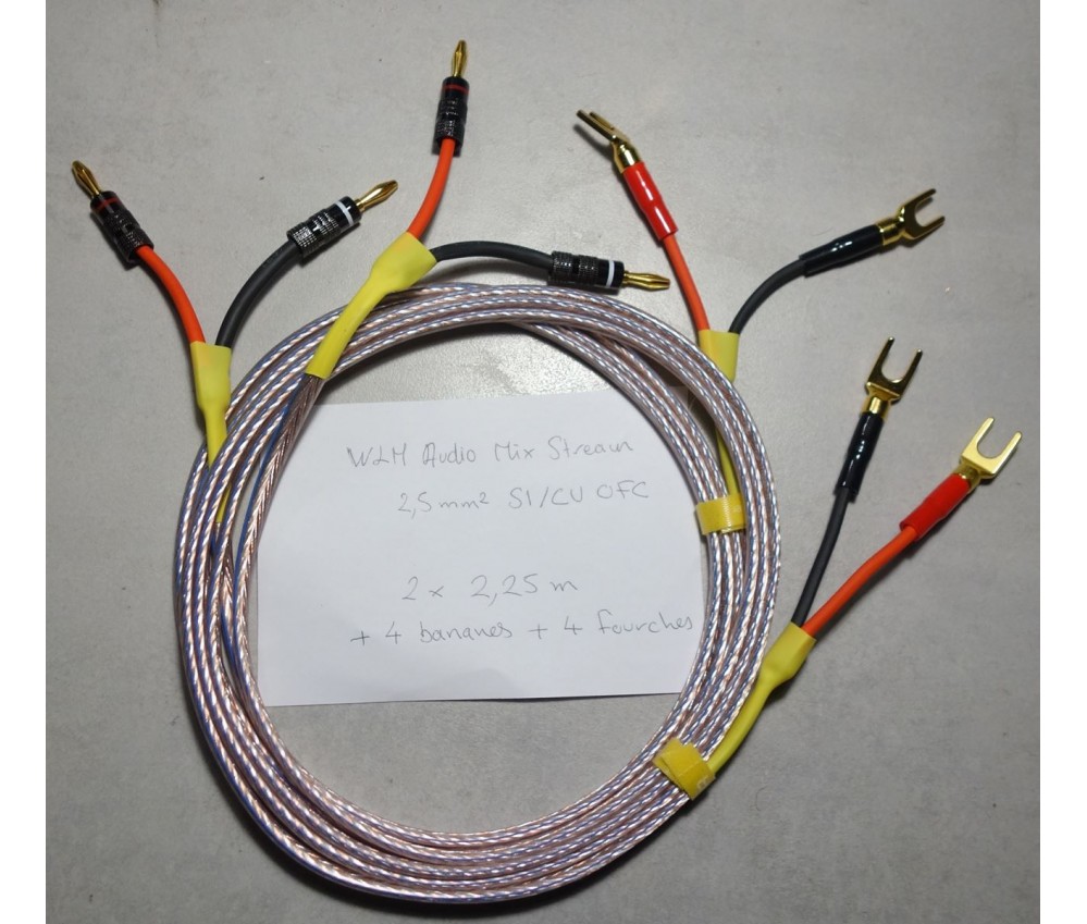 Câbles haut-parleur / enceintes / speaker montés - W&M Audio Mix Stream 2,5 mm² SI/CU OFC 2 x 2,25 m + 4 bananes + 4 fourches plaquées or