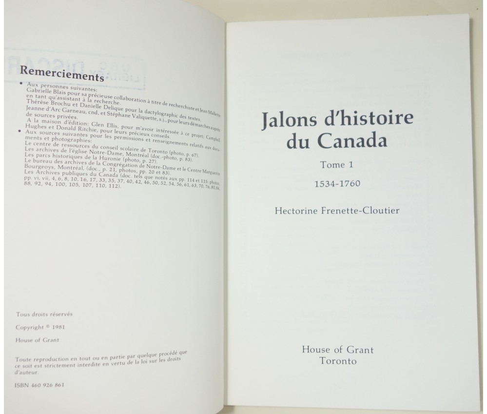 Voir nos visuels, Toronto, House of Grant, 117 pages, 1981. Plusieurs reproductions et gravures anciennes. In-8 broché, couverture illustrée (très frottée, usures), intérieur propre. Très rare exemplaire. Envoi rapide et soigné! (Z18)