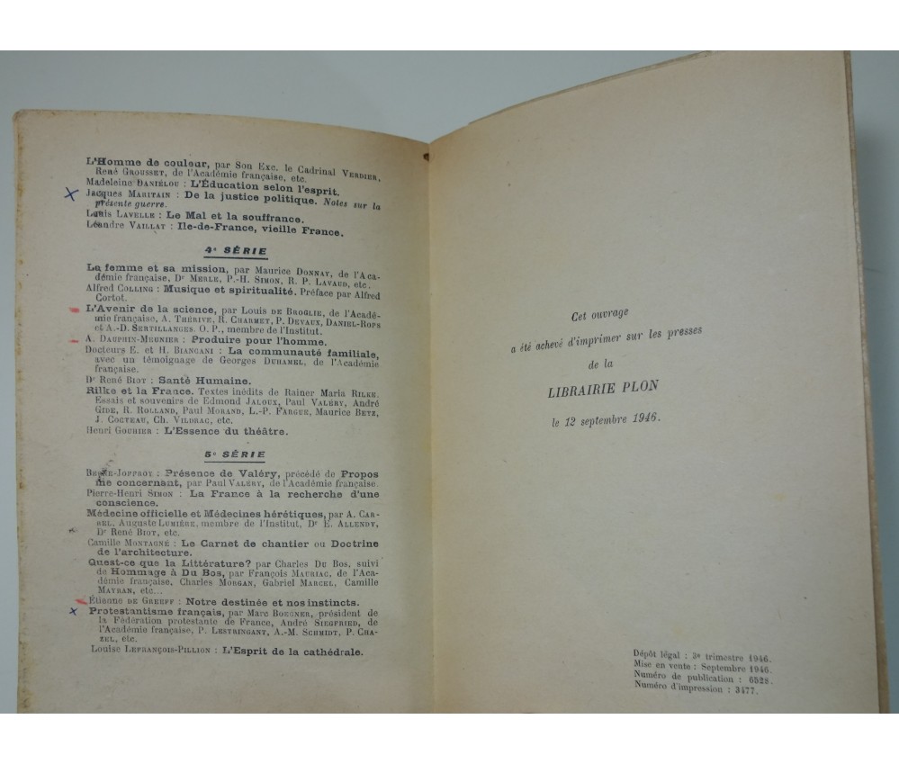 Voir nos visuels, Paris, Librairie Plon - collection Présences, 278 pages, 1946. In-12 broché, couverture imprimée (dos ridé, marques), intérieur propre légèrement bruni, quelques passages surlignés. Envoi rapide et soigné! (Z5)