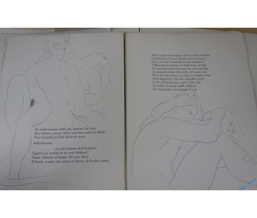 Paris, Société des Amis du Livre, 39 pages, 1948. Grand in-4 en feuilles, couverture gravée, couverture et étui d'origine. Premier tirage, un des 88 exemplaires de sociétaires numérotés sur vélin filigrané au Faune (tirage total à 105 exemplaires). Comprend les splendides eaux-fortes originales de TREMOIS, gravées par Raymond Haasen sauf pour la couverture gravée sur bois par Pierre Bouchet. Exemplaire considérablement enrichi par une suite comprenant : 2 épreuves signées en double-page (1 sur Japon semble-t-il rehaussée à l'encre et 1 sur vélin), 3 épreuves en pleine page signées au crayon, 1 couverture en noir signée, 1 couverture en couleurs (avec titre et auteur), 1 menu en double page de l'Automobile Club de 1948 avec une épreuve. Très bon état, intérieur très propre, usures et marques à l'emboitage, très bel exemplaire. Envoi rapide, soigné et bien protégé par Colissimo recommandé, avec suivi et assurance. Expédition vers toutes les destinations.