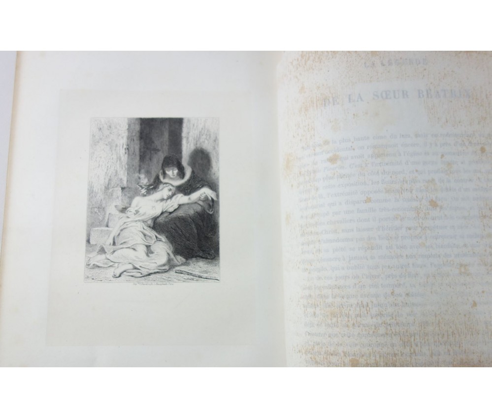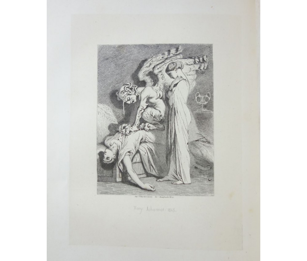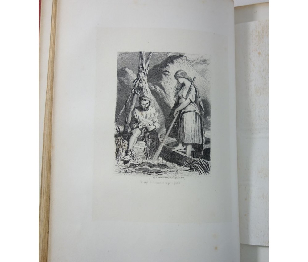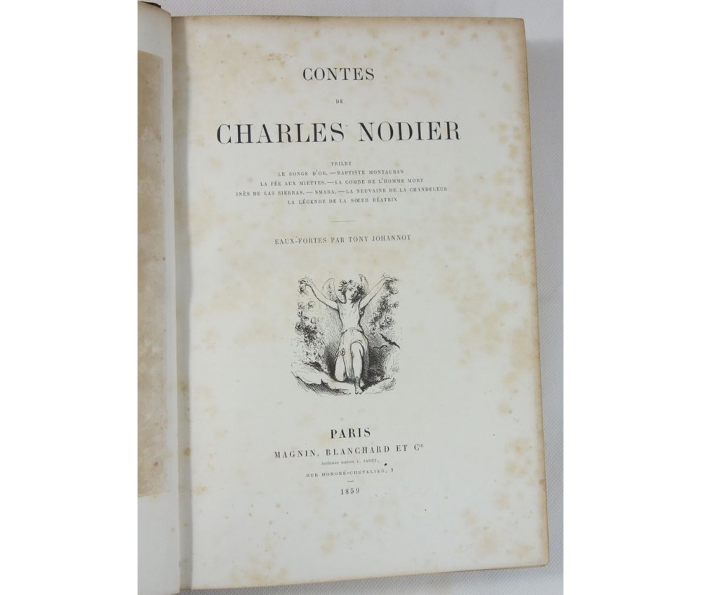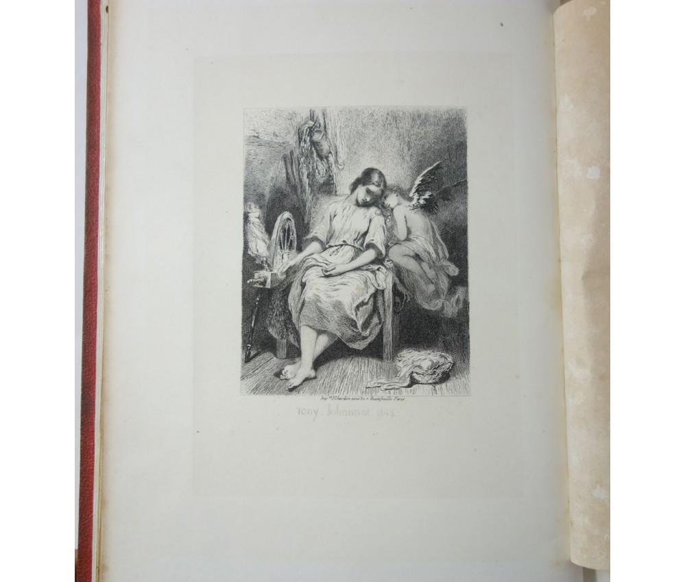 Voir nos visuels, bel exemplaire bien relié, avec les superbes planches hors-texte de Tony Johannot. Référencé par VICAIRE, VI-124. Paris, Magnin, Blanchard, 318 pages, imprimé par J. Claye, 1859. In-4, bonne reliure demi-cuir de l'éditeur (usure de la coiffe sup, plats salis, frottements), dos à faux nerfs, caissons ornés, tranches dorées, planches sur vélin fort sous serpentes, rousseurs fortes sur le texte, planches moins touchées grâce aux serpentes. Nombreux livres rares et illustrés à découvrir dans notre librairie! Envoi rapide et soigné! (F35)