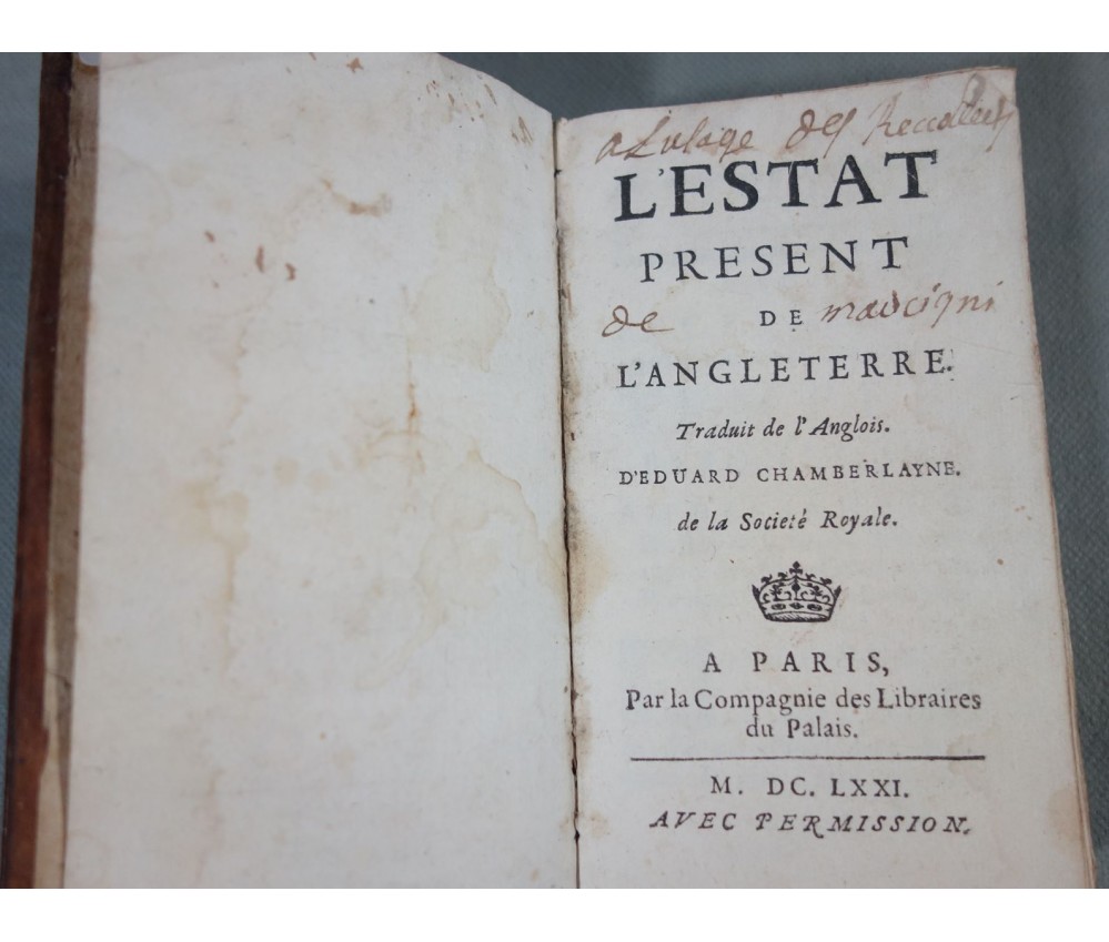 Voir nos visuels, 2nde édition de la traduction de ce chef d’œuvre (E.O. en anglais de 1669), Paris, Compagnie des Libraires du Palais, (7)+478 pages, 1671. in-12, reliure d'époque plein veau (coins usés, mord supérieur au 2/3 fendu)), dos orné à 4 nerfs (rides et dorures passées), tranches mouchetées, intérieur assez propre (rousseurs ou petites taches brune éparses, très légères mouillures en tête). Envoi rapide et soigné!(B22)
