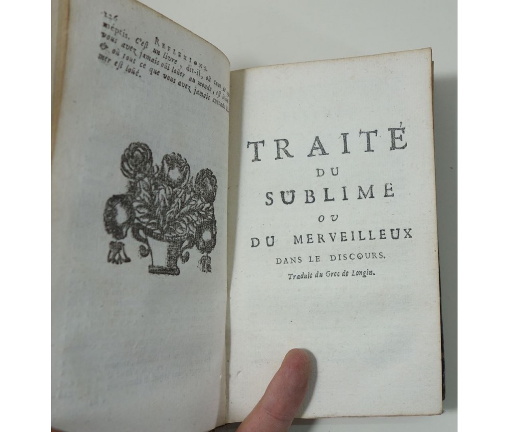 Voir nos visuels, rare exemplaire mutilé de la satire X (p. 61 à 80), avec des premières éditions de certaines pièces. A Amsterdam, Chez Henry Chelte, 410 pages + table, 1763. JOINT le tome 2 des oeuvres diverse (1741) avec le traité du sublime (dos très abimé avec manques). In-12, reliure plein cuir d'époque en état moyen (coiffe supérieure absente, bords et coins rognés, frottements et épidermures), dos à nerfs, caissons ornés, gardes marbrées, sur papier vergé, quelques taches et marques, inscriptions sur pages blanches et de titre, notes bibliographiques au crayon. Nombreux livres anciens et rares à découvrir dans notre librairie! Envoi rapide et soigné! (Z19)