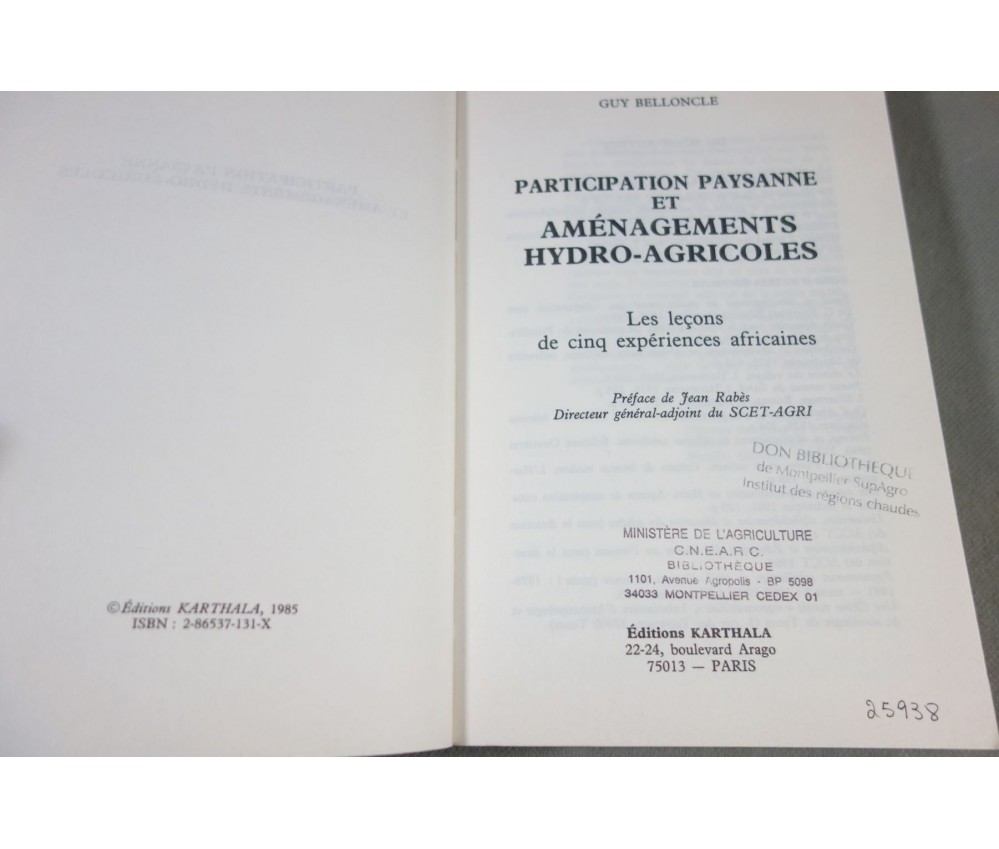 Ed Karthala, 340 p, 1985. Livre in-8, intérieur très propre, ancien ex de bibliothèque, donc tampons régulièrement et cote sur la coiffe inf, petite usure des coins. Envoi rapide et soigné! (E26) Nombreux livres sur l'agriculture dans le monde en stock...