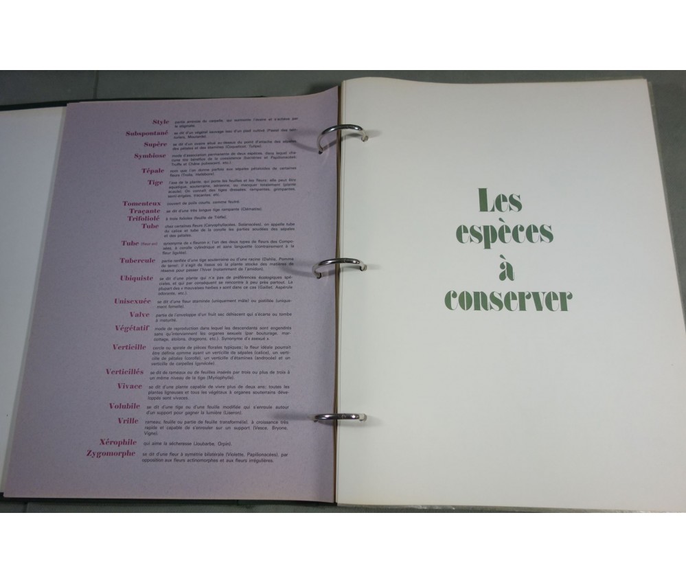 Voir nos photos, imposant classeur contenant de superbes planches couleurs avec en vis à vis des pages blanches sous serpentes pour recueillir et conservés les variétés de plantes, Tchou et Robert Laffont, 1974. Format in-4, classeur toilé (usures et marques), intérieur très propre, légèrement bruni, planches non numérotées (nombre inconnu). Envoi rapide et soigné! (F14)