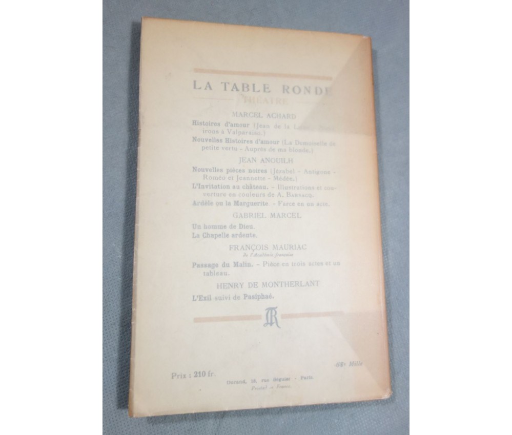 Voir nos photos, La table Ronde, 1951. Livre in-12 broché, couverture imprimée sous protection, intérieur propre à peine jauni, légère usure des coins. Envoi rapide et soigné! (F16) Nombreuses pièces de théâtre en stock...