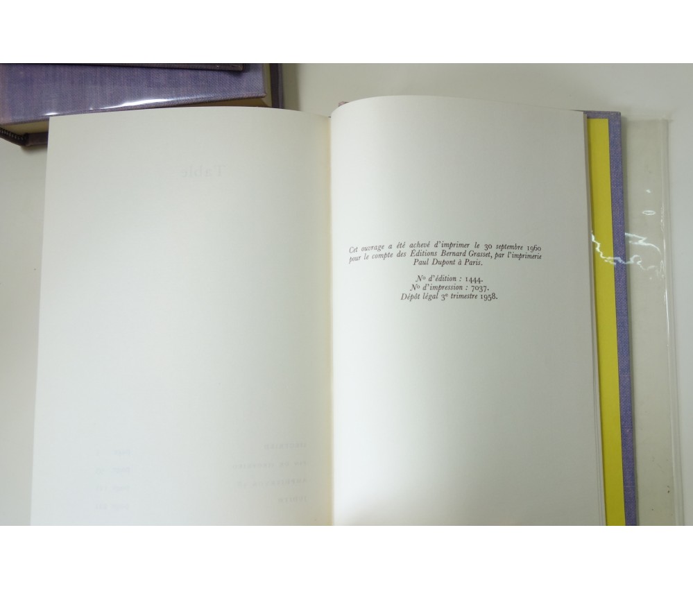 Voir nos visuels, complet en 4 tomes, sur un superbe papier vergé, Paris, Bernard Grasset, 1958 - 1959. in-8, jolies reliures éditeur pleine toile sous rhodoïd (dos insolés), plats avants illustrés d'une vignette, intérieur frais. Bel ensemble bien relié sur un papier luxueux. Envoi rapide et soigné! (MM1)