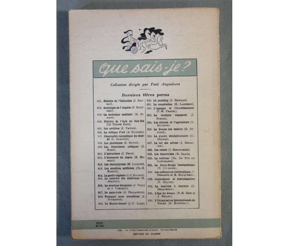 2è ed., PUF/ que sais-je ?, 126p., 1959. Livre in-12, intérieur jauni, plats frottés et dos usé. Envoi rapide et soigné! (F13) Grand choix de que sais-je ? en stock...