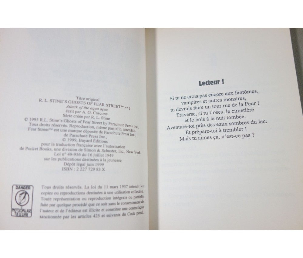ed. Bayard poche / rue de la peur, 1999, dès 9 ans. Livre en comme neuf. Nombreux livres de cette coll. disponibles dans notre boutique. Envoi rapide et soigné! ** (d10)