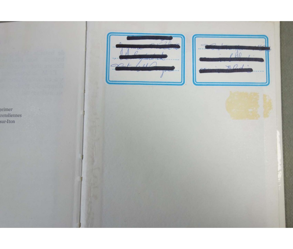 Livre in-8 cartonné, intérieur propre, mais usure des bords, coins et coiffes, et 2 étiquettes à nom sur la 3ème de couverture.