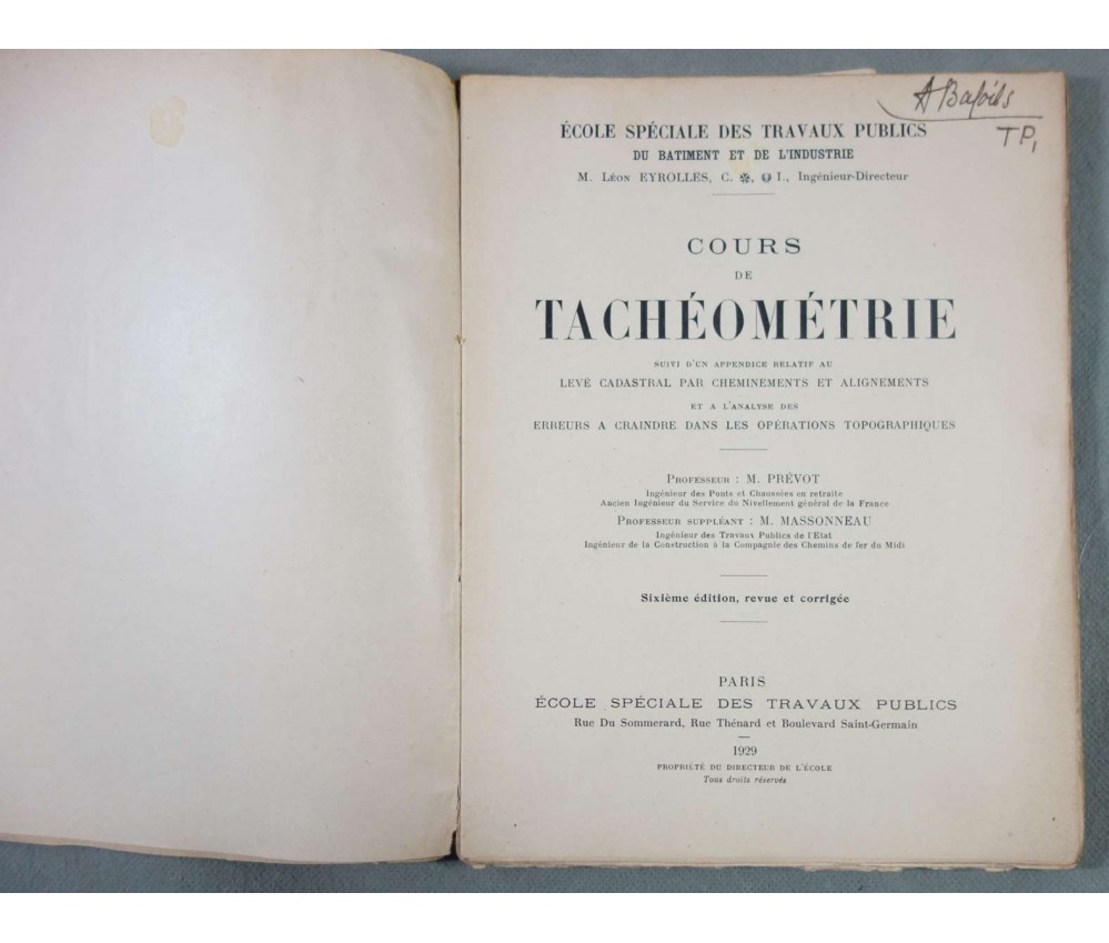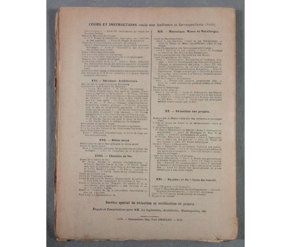 Ecole Spéciale des travaux Publics, 6è ed., 172pp, 1929. Nombreuses figures in-texte. in-8 broché, intérieur très propre très mais jauni, manques de papier au bord du plat avant et à la coiffe de queue, couv jaunie. Envoi rapide et soigné! (G6) Nombreux manuels anciens en stock...