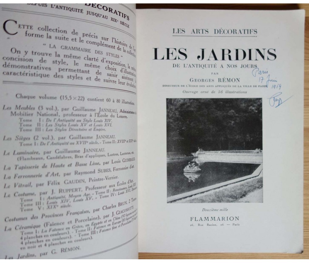 les Jardins, de l'Antiquité à nos jours - Georges Rémon - Ed. Lib. Ernest Flammarion, coll. Les Arts Décoratifs, 63 pages, 1943, sans jaquette, 56 illustrations (photos, croquis, plans...).