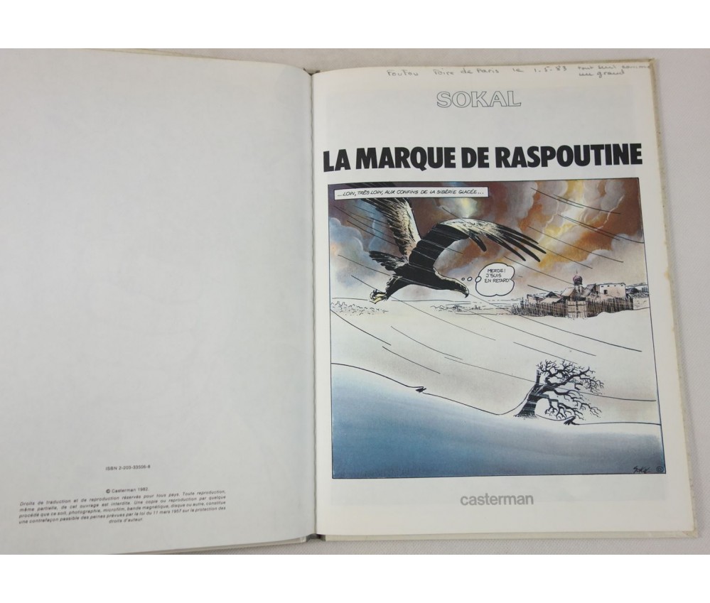 Voir nos visuels, bon exemplaire, édition originale. Editions Casterman, Un auteur (à suivre), 1982 (imp. en août 1982). Album (30,5 x 23 cm), couverture rigide illustrée (1 coiffe abimée, marques, taches), intérieur propre, 1 inscription au crayon gris, taches sur tranche. Nombreuses BD et Comics à découvrir dans notre librairie! Envoi rapide et soigné! (F35)