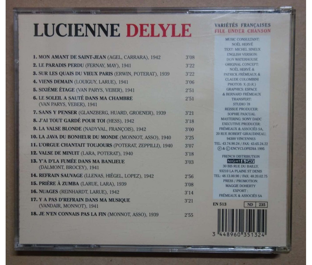 Lucienne Delyle - Anthologie - L'aristocrate de la chanson populaire - 18 titres, 1995, encyclopedia -