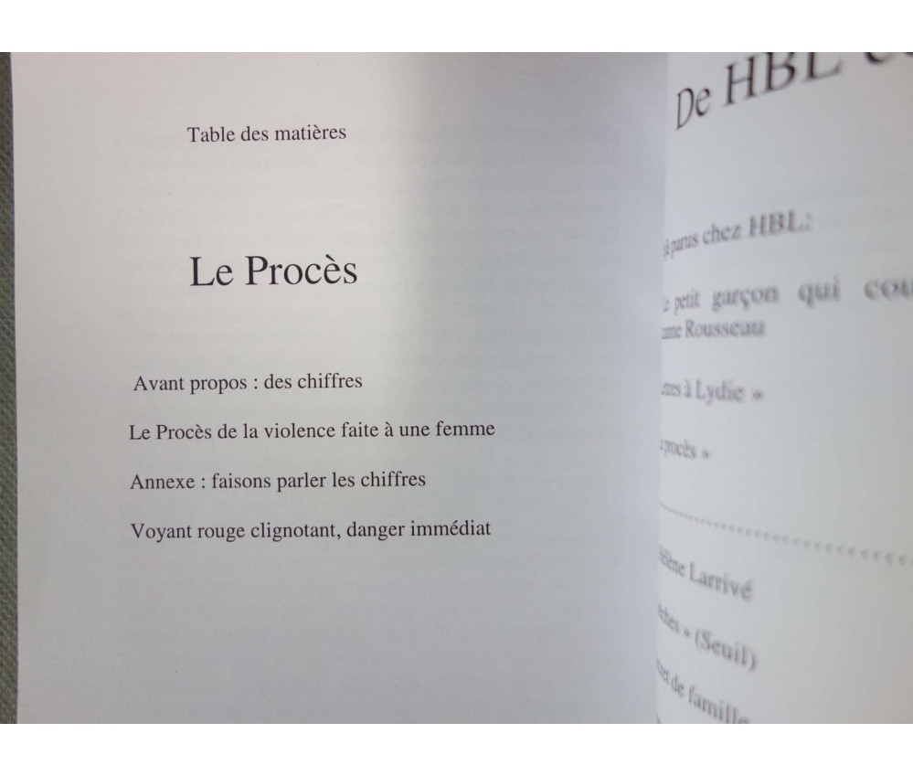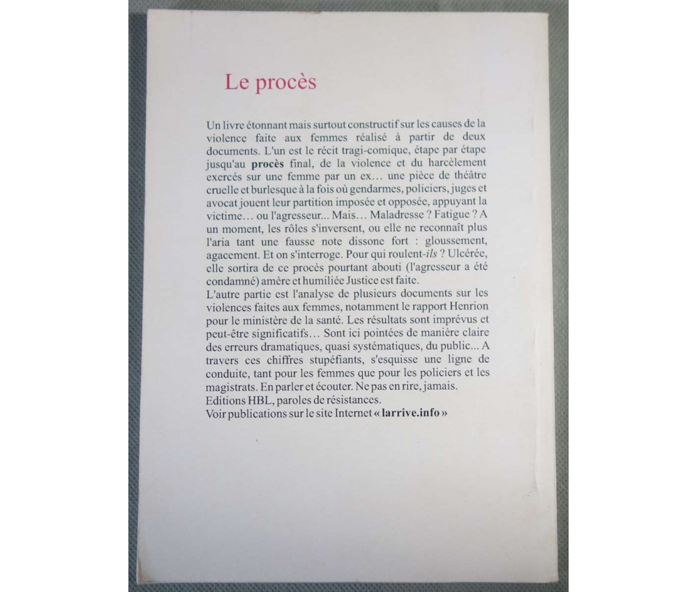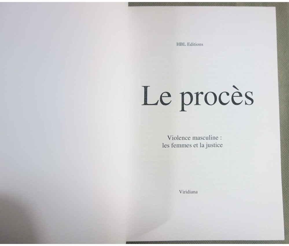 Le procès - Violence masculine: les femmes et la justice - HBL éditions - Viridiana - 2006 - 87 pages -