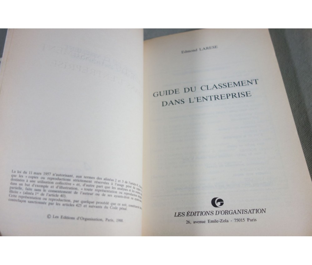 Voir notre visuel, Ed. D'Organisation, 173 pages, 1988. Livre grand in-8 broché en bon état, intérieur propre mais jauni, usure des bords et coins, traces noires sur les plats. Envoi rapide et soigné! (D2) Autres livres dans cette thématique en stock...