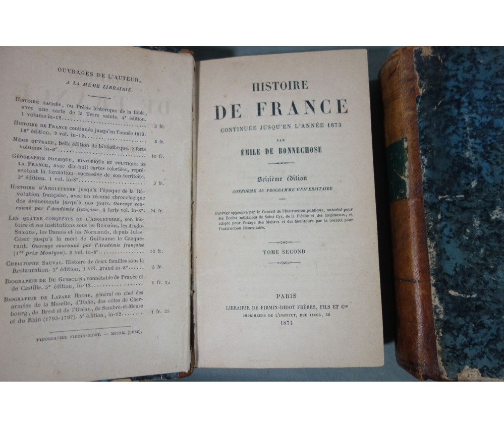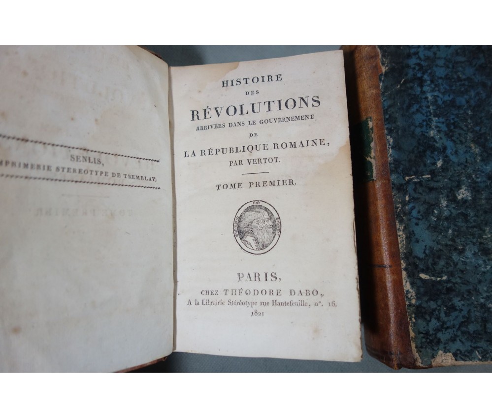 Lot de 3 volumes : - BONNECHOSE, Histoire de France continuée jusqu'en L'Année 1873, 2 tomes - VERTOT, Histoire des Révolutions arrivées dans le gouvernement de la République Romaine, tome 1 seul