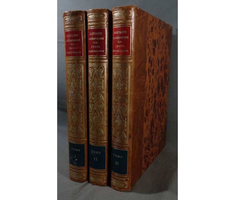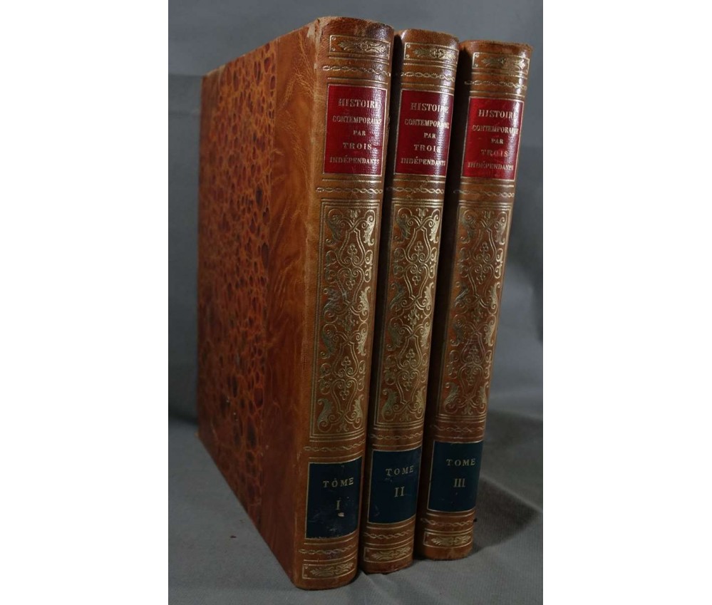 In-4, reliures demi-cuir à coins (usures des bords et coins), dos lisses richement ornés, tranches dorées (décoloration), plats et gardes marbrées, intérieur propre, grand papier. Bel ensemble.