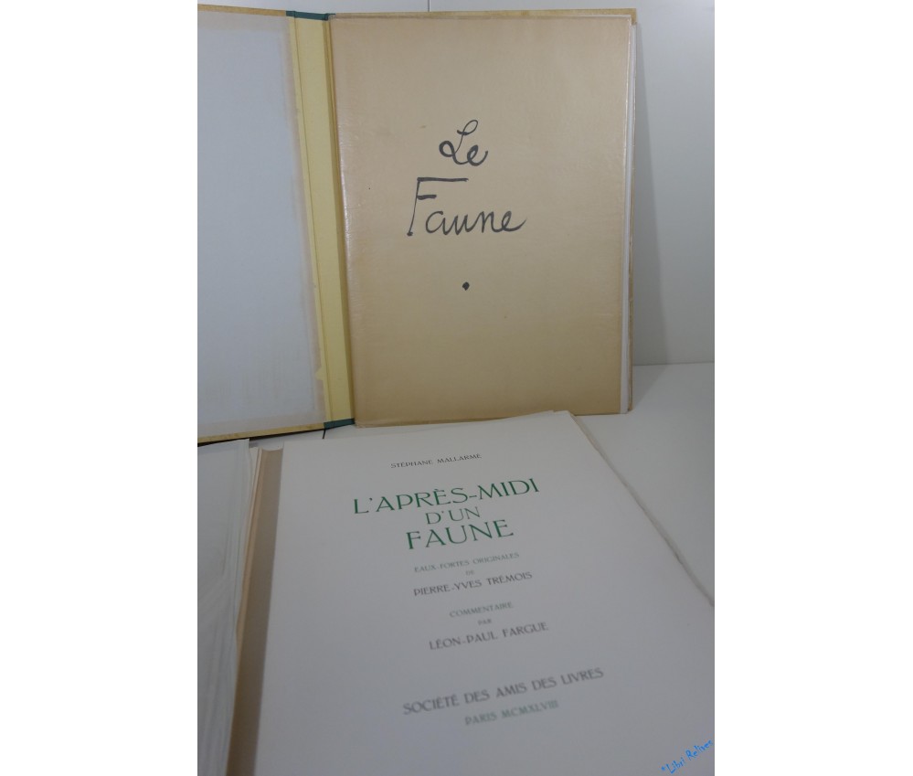 Paris, Société des Amis du Livre, 39 pages, 1948. Grand in-4 en feuilles, couverture gravée, couverture et étui d'origine. Premier tirage, un des 88 exemplaires de sociétaires numérotés sur vélin filigrané au Faune (tirage total à 105 exemplaires). Comprend les splendides eaux-fortes originales de TREMOIS, gravées par Raymond Haasen sauf pour la couverture gravée sur bois par Pierre Bouchet. Exemplaire considérablement enrichi par une suite comprenant : 2 épreuves signées en double-page (1 sur Japon semble-t-il rehaussée à l'encre et 1 sur vélin), 3 épreuves en pleine page signées au crayon, 1 couverture en noir signée, 1 couverture en couleurs (avec titre et auteur), 1 menu en double page de l'Automobile Club de 1948 avec une épreuve. Très bon état, intérieur très propre, usures et marques à l'emboitage, très bel exemplaire. Envoi rapide, soigné et bien protégé par Colissimo recommandé, avec suivi et assurance. Expédition vers toutes les destinations.
