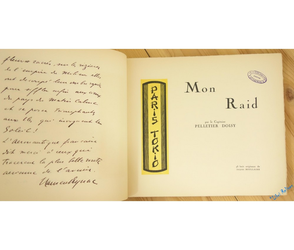 Voir nos visuels, 1è ed. ill., tirage à 2000 exemplaires numérotés (n°1082) sur pur fil vergé Lafuma, Ateliers d'Aviation L. Bréguet, Imp. Lapina, 127 pages, 1924. 48 bois originaux de BOULLAIRE (Peintre et graveur (Ec. Fr.), Bénézit II-63). In-8 oblong broché, couverture imprimée (détachée, tachée et usée), intérieur propre mais nombreux tampons et petite mouillure en coin des 4 premières p. Envoi rapide et soigné!(B18)