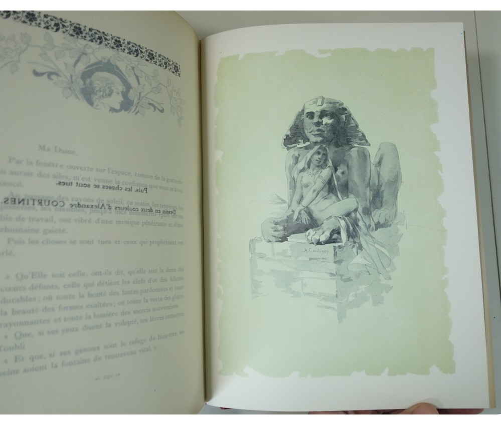 Voir nos visuels, un des 500 exemplaires numérotés sur vélin (tirage limité à 550), Paris, Bibliothèque Artistique et Littéraire, Imp. Chamerot et Renouard pour la société La Plume, 310 pages, 1898. Ornementations du texte très nombreuses, belles et variées, accompagnées par des magnifiques planches sous serpentes légendées des meilleurs artistes de l'époque Art nouveau : Mucha, Courtines, E. Causé, E. Rocher, F. Maréchal, P. Berthon... Impression de grande qualité sur un beau vélin. In-4, demi-chagrin rouge à coins (usures des coins), tranche supérieure dorée, intérieur propre, quelques petites marques. Très bel et rare exemplaire. Envoi rapide et soigné! (F24)