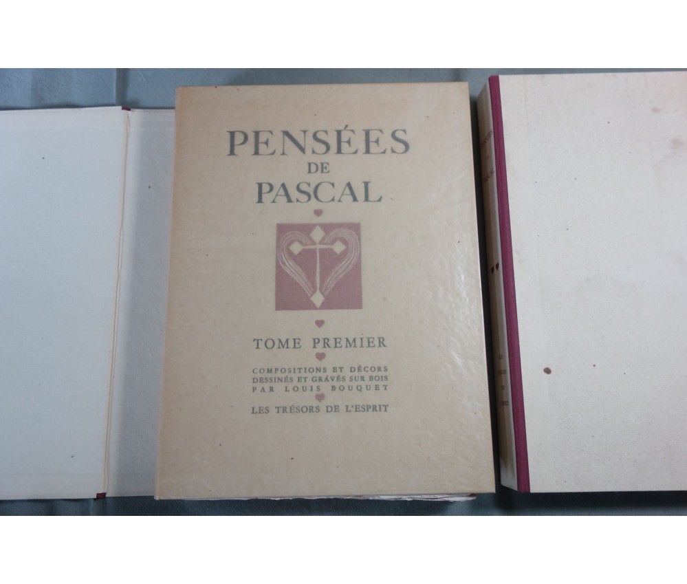 Voir nos visuels, bon et rare exemplaire, 2 volumes, superbes ornementations et gravures sur bois. Tirage numéroté, limité à 290 exemplaires, 1 des 234 sur papier vergé pur chiffon d'Auvergne à la main. Collection les Trésors de l'esprit, 1946. Grand In-4, chemise et étui (taches), couverture rempliée, en feuilles, très beau papier non coupé ni ébarbé, propre, quelques petites taches. Nombreux livres rares et illustrés modernes à découvrir dans notre librairie. Envoi rapide et soigné! (G12)
