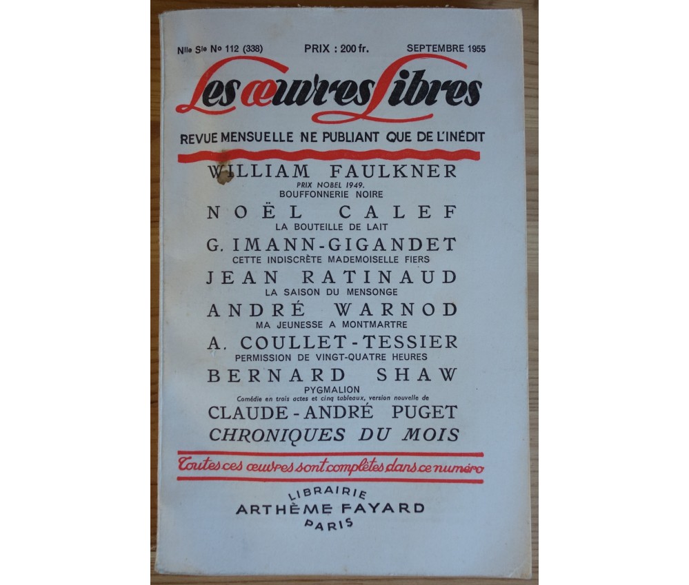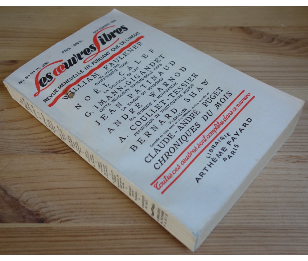 Voir nos visuels, Ed. A. Fayard et Cie, coll. "les oeuvres libres", 318 pages, Septembre 1955 n°112. Livre broché in-8 en bon état, intérieur jauni mais pages non coupées, mais livre craquant, une tache sur le plat avant et une légère usure de la coiffe inf. Envoi rapide et soigné! (Z18) Nombreux numéros de cette collection en stock...