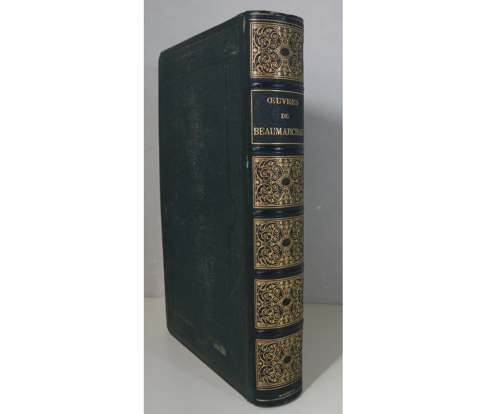 Voir nos visuels, belles gravures sur acier d'après Staal, dont 1 frontispice et des hors-texte, Paris, Garnier frères, Imp. raçon, 719 pages, 1874. Cf. Vicaire, I-361. Reliure signée en queue Ch. Magnier. Fort In-4, superbe reliure demi-cuir (usure des bords et coins), dos à nerfs et caissons très richement ornés, plats en percaline, tranches dorées, intérieur bien blanc mais rousseurs sur certaines pages. Bel exemplaire sous une reliure signée. Envoi rapide et soigné! (E29) Titre complet: Oeuvres complètes de Beaumarchais. Nouvelle édition, précédée d'une notice biographique par M. Louis Moland. Ornée de gravures sur acier d'après les dessins de Staal.