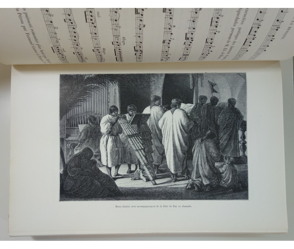 Ouvrage contenant 359 gravures représentant les instruments de musique chez les divers peuples et à toutes les époques, 68 portraits d'artistes remarquables, des exemples de notations, des mélodies et des fac-similé tirés des manuscrits