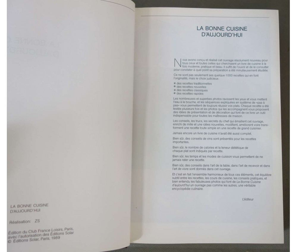 La bonne cuisine d'aujourd'hui - Ed. France Loisirs, 621 pages, 1990, relié, illustré.