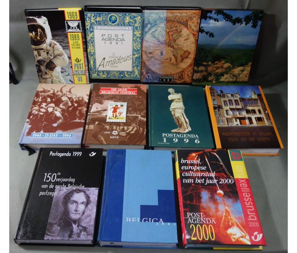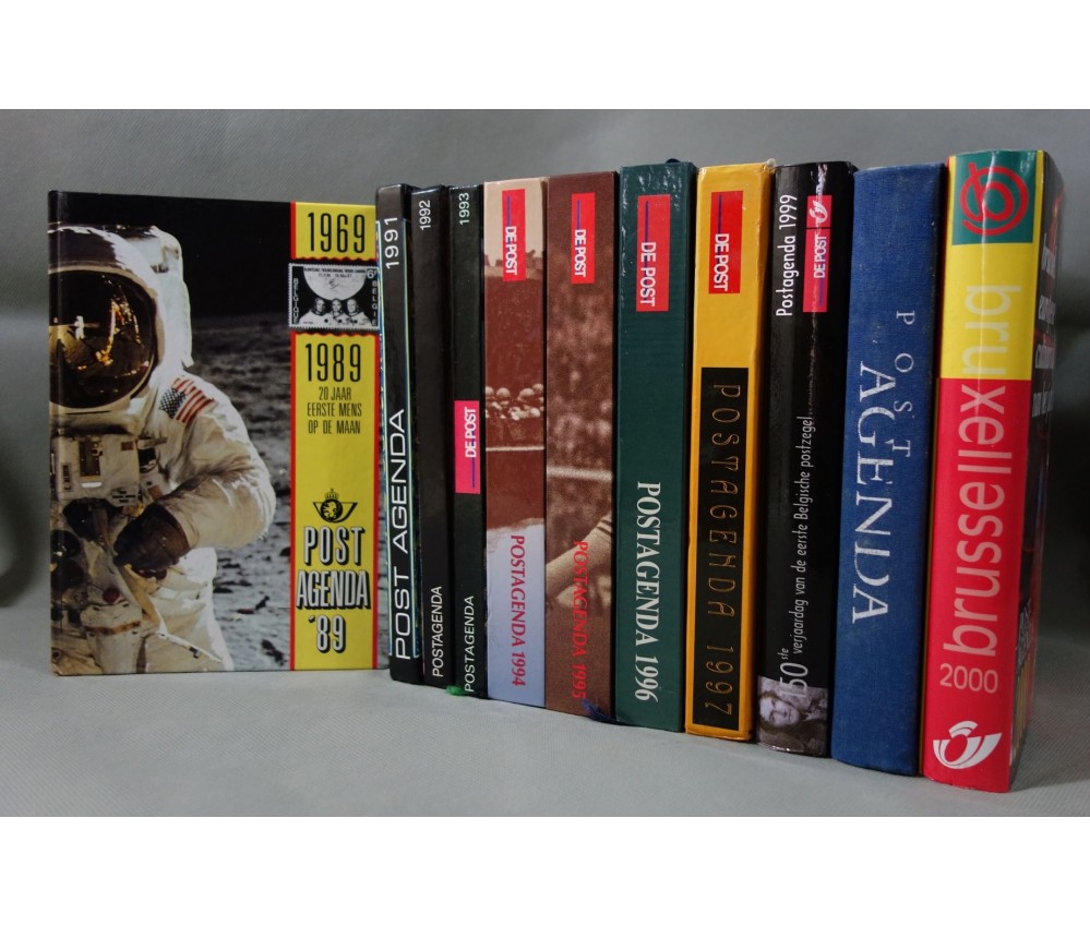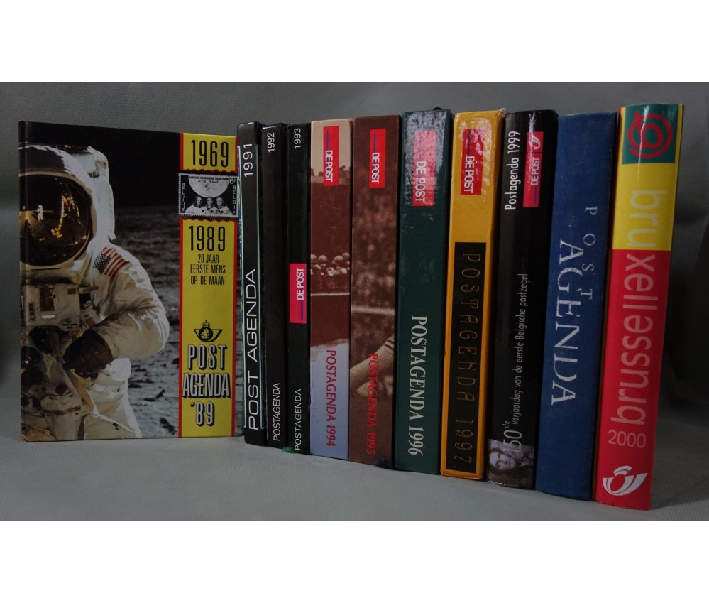 Voir nos visuels, rare et bel ensemble de 11 agendas postaux belges (en flamand), diverses thématiques, De Post, couvertures cartonnées illustrées (en très bon état, 1 abimé aux coiffes, 1 frotté), intérieurs propres, papier couché. Nombreux autres lots de livres rares à découvrir dans notre librairie! Envoi rapide et soigné! (Y13)