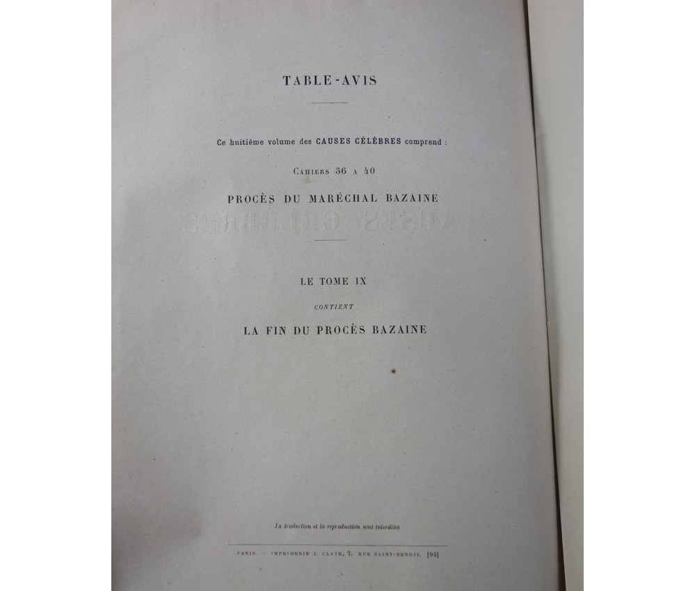 Causes Célèbres de tous les peuples - volume 8, cahiers 36 à 40 - Procès politiques - Maréchal BAZAINE