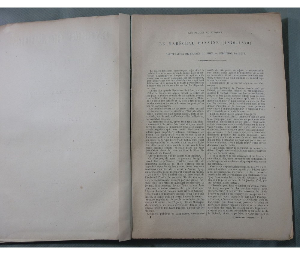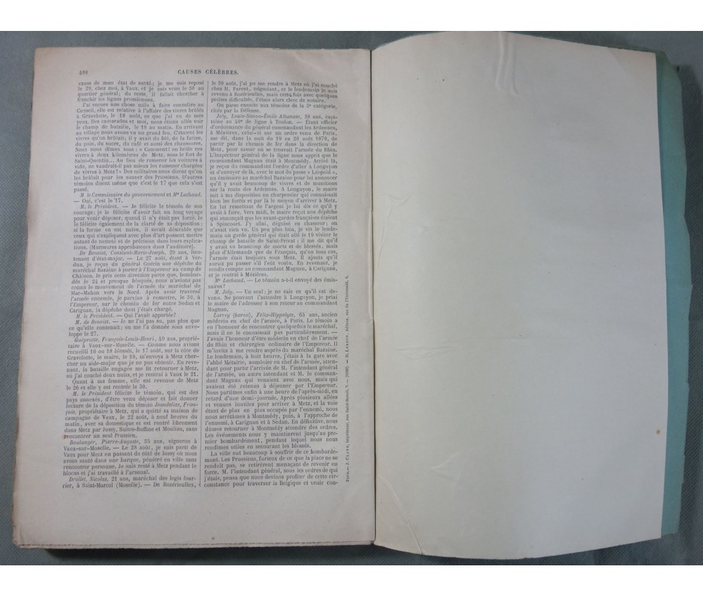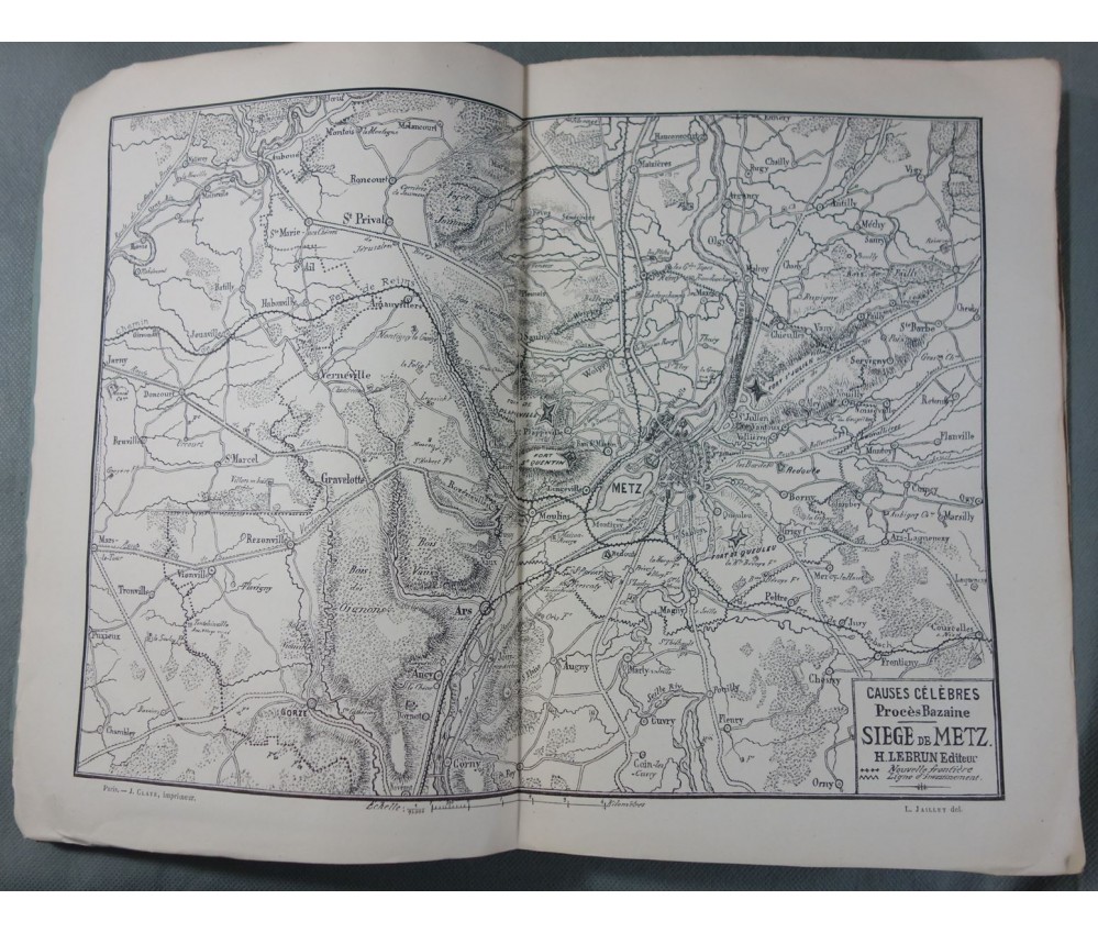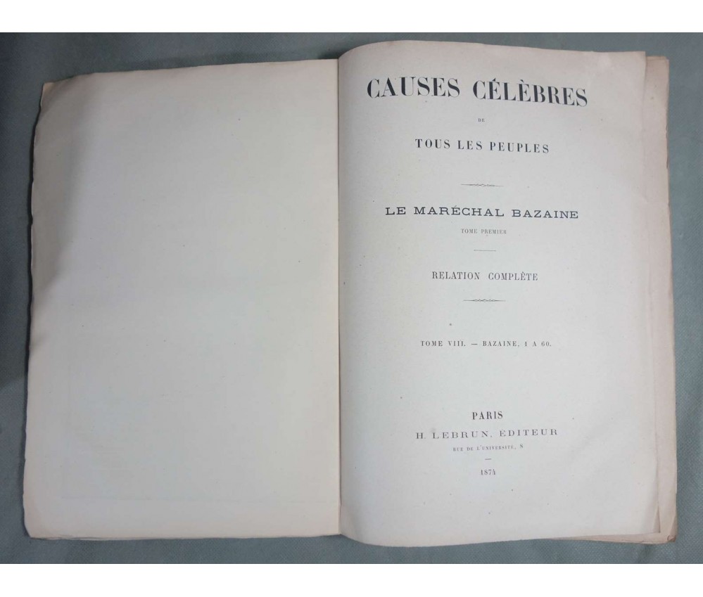 Voir nos visuels - Rare exemplaire, avec une carte en double page du siège de Metz. Volume 8 seul (l'histoire du procès n'est pas complète et se termine dans le 9), Paris, Lebrun, libraire - éditeur, 400 pages, 1874.