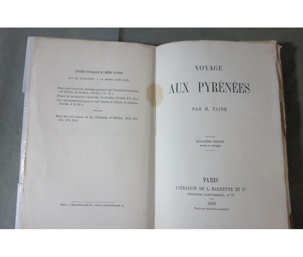 Voir notre visuel, 4è ed. revue et corrigée, Hachette, 350pp, 1863. In-12 broché, intérieur propre, de rares taches, sous papier cristal, dos ridé, quelques marques sur les plats. Envoi rapide et soigné! (A16)