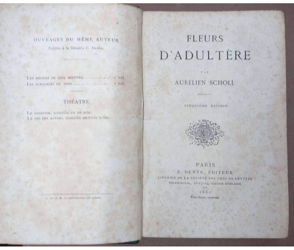 Fleurs d'adultère - Aurélien Scholl - Ed. Dentu, 1881 -