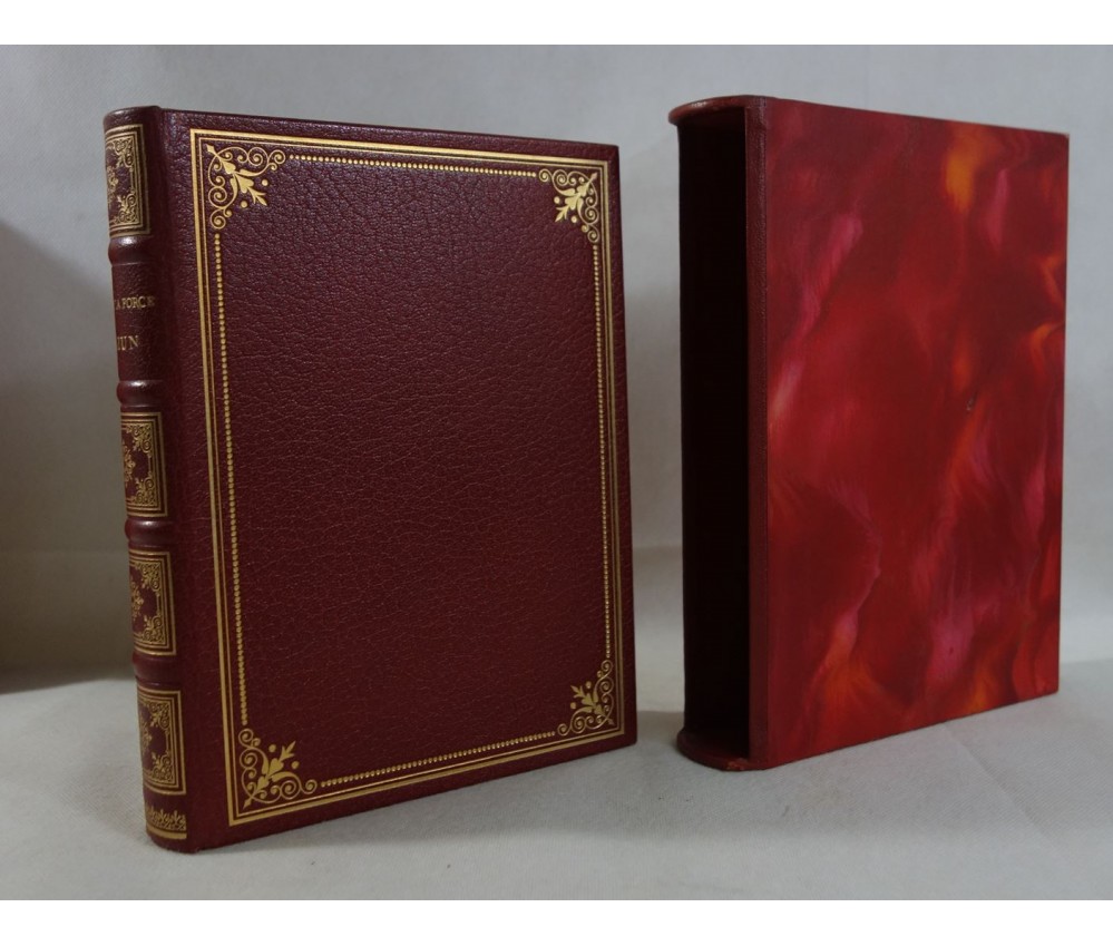 Voir nos visuels, un des 980 exemplaires numérotés sur vergé d'Arches filigrané, Collection des douze meilleures oeuvres historiques, André Sauret éditeur, 351 pages, 1966. Nombreuses gravures hors texte, dont des double-page et des planches en couleurs. Impressions et reliures par les Ateliers Desclée à Tournai. Grand in-8, superbe reliure plein chagrin rouge, dos à nerfs et caissons ornés, plats encadrés, tranche de tête dorée, gardes marbrées et nacrées. étui bordé (marques), intérieur très propre, plats et dos marqués. Bel et rare exemplaire, collection complète en stock, seul le 1er tome est justifié. Envoi rapide et soigné! (G12)