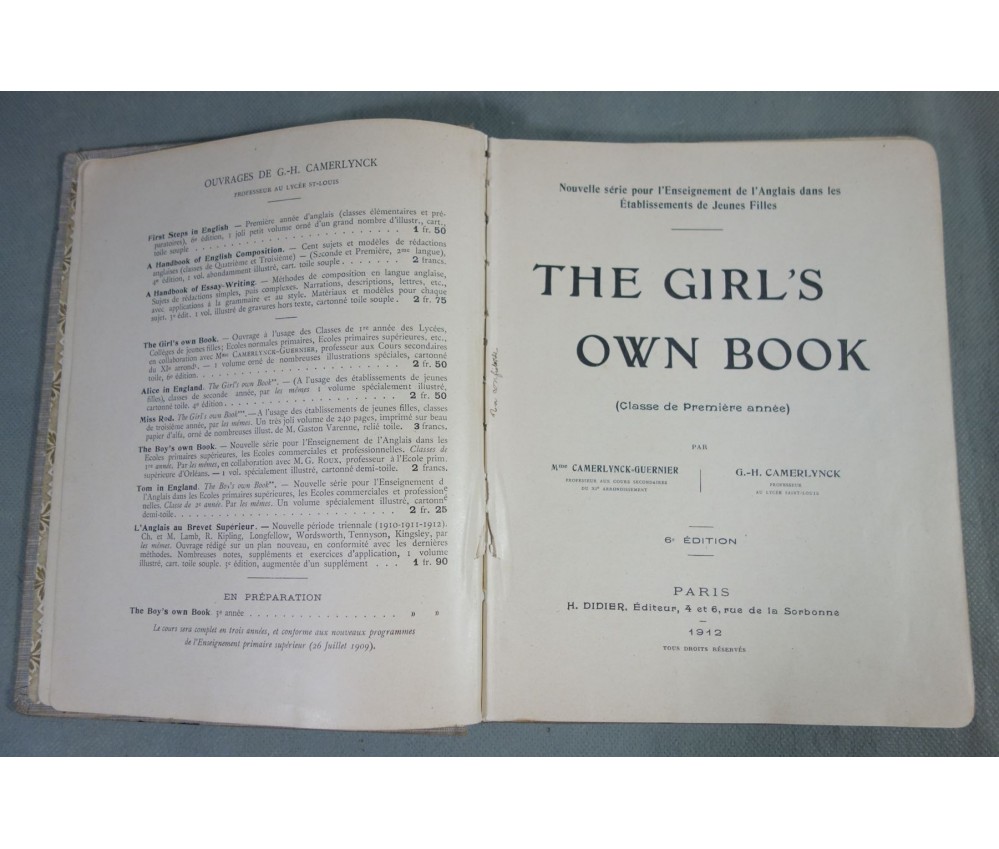 Voir nos visuels, vendu en l'état (mauvais), nombreuses illustrations en noir - classe de 1ère année, 6è édition, Didier, 1912. Livre in-8, reliure toile tachée et usée, intérieur avec taches et inscriptions, brochage fragile. Envoi rapide et soigné! (B18)
