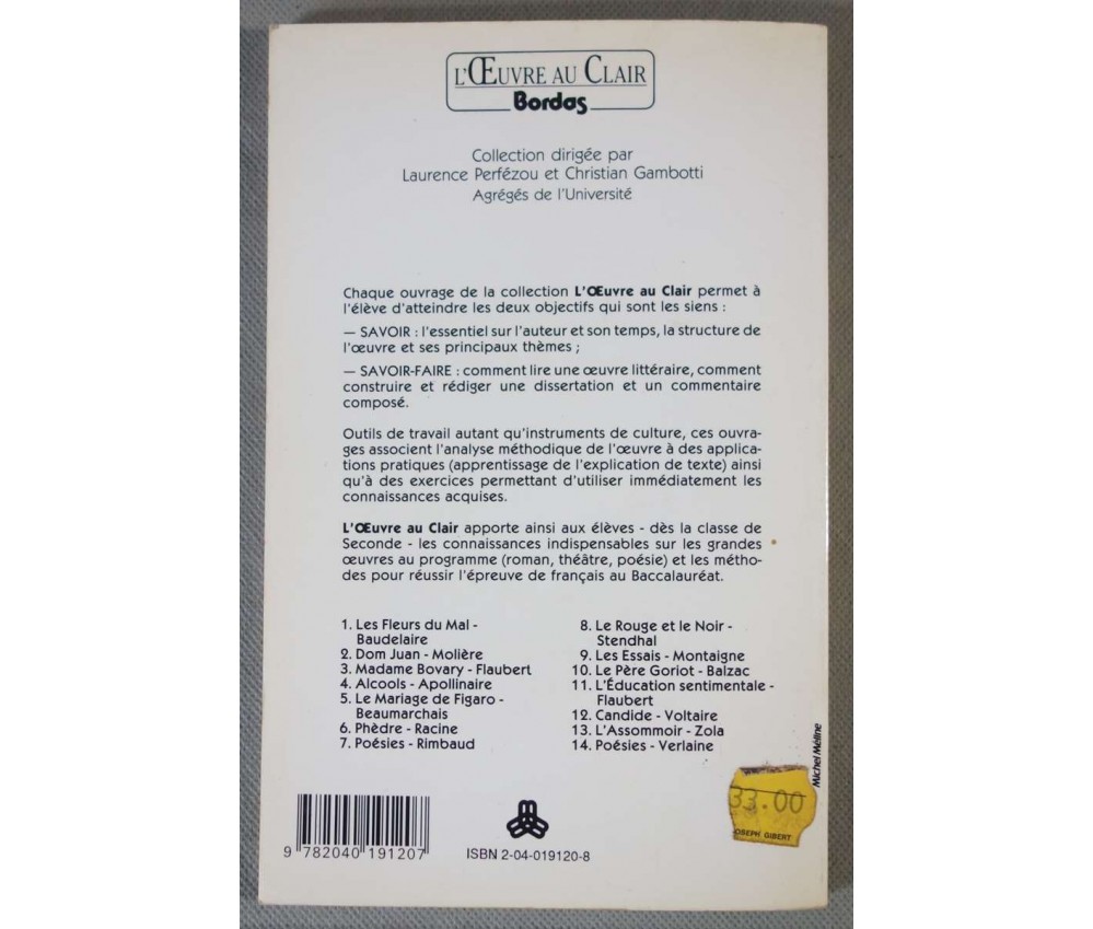 Voir nos visuels - Ed. Bordas/ l' oeuvre au clair, 95 pages, 1990. Intérieur très propre un peu jauni et petite usure des coins. Envoi rapide et soigné!(A7) Nombreuses livres d'études et scolaires en stock...