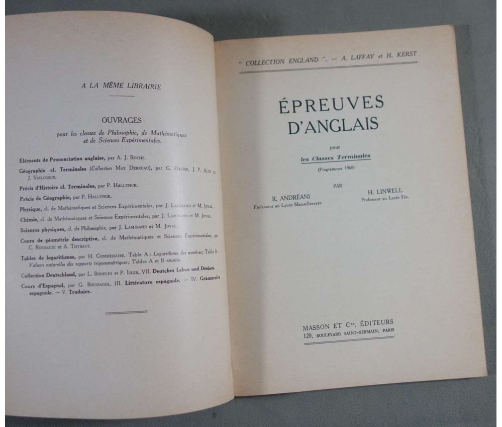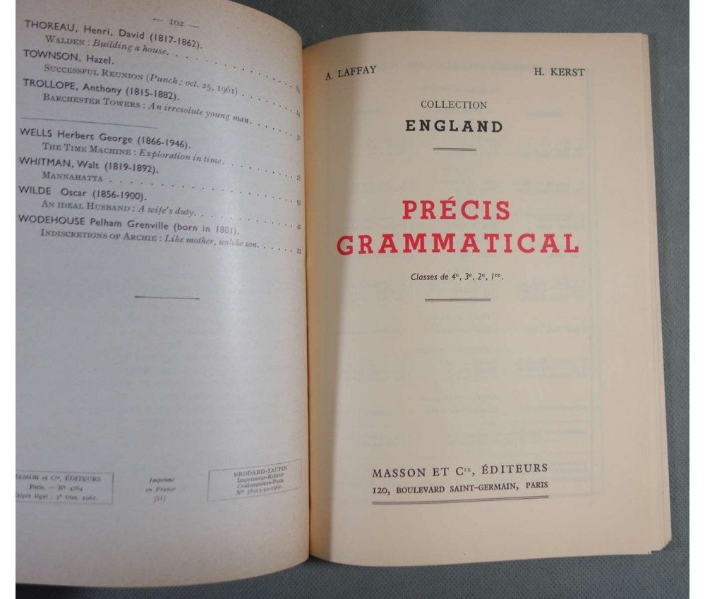 Voir nos photos - Editions Masson et Cie, 173 pages (102 + 71 de précis grammaticale), 1962.