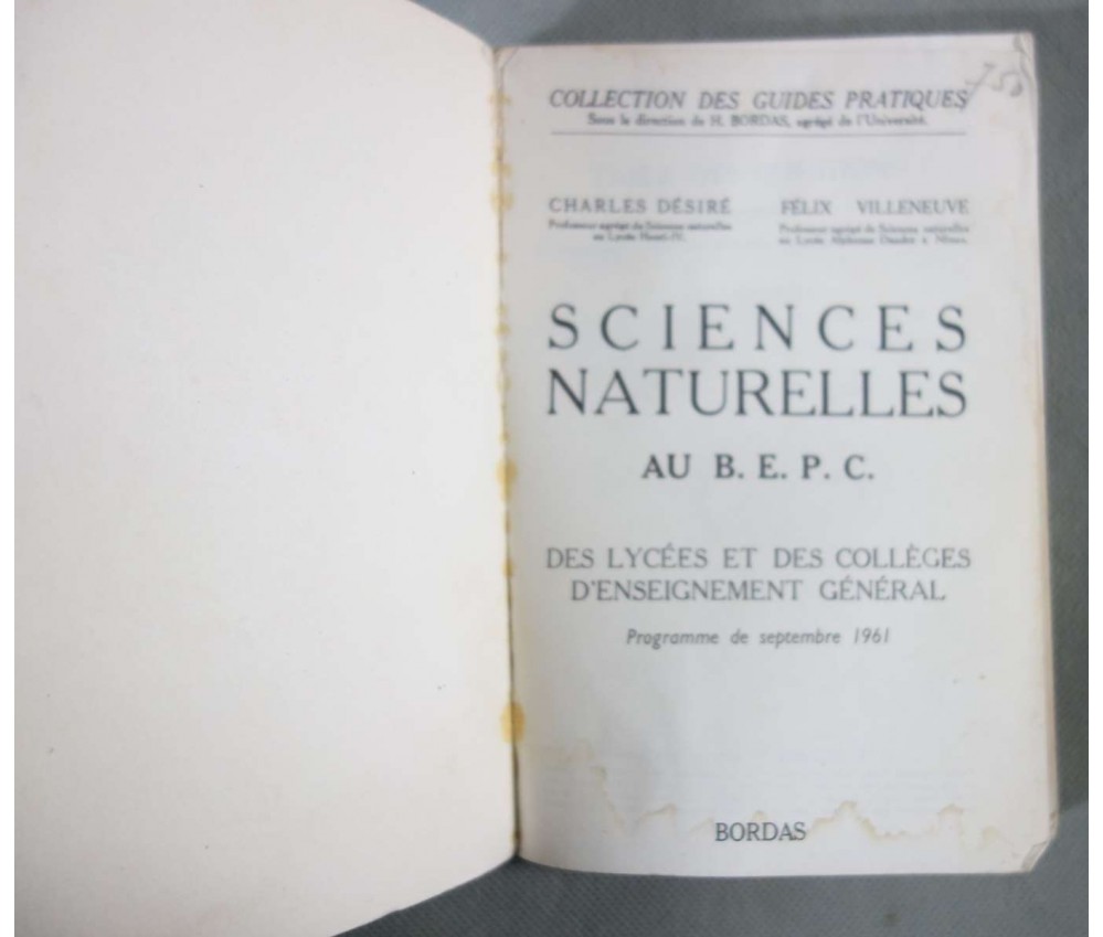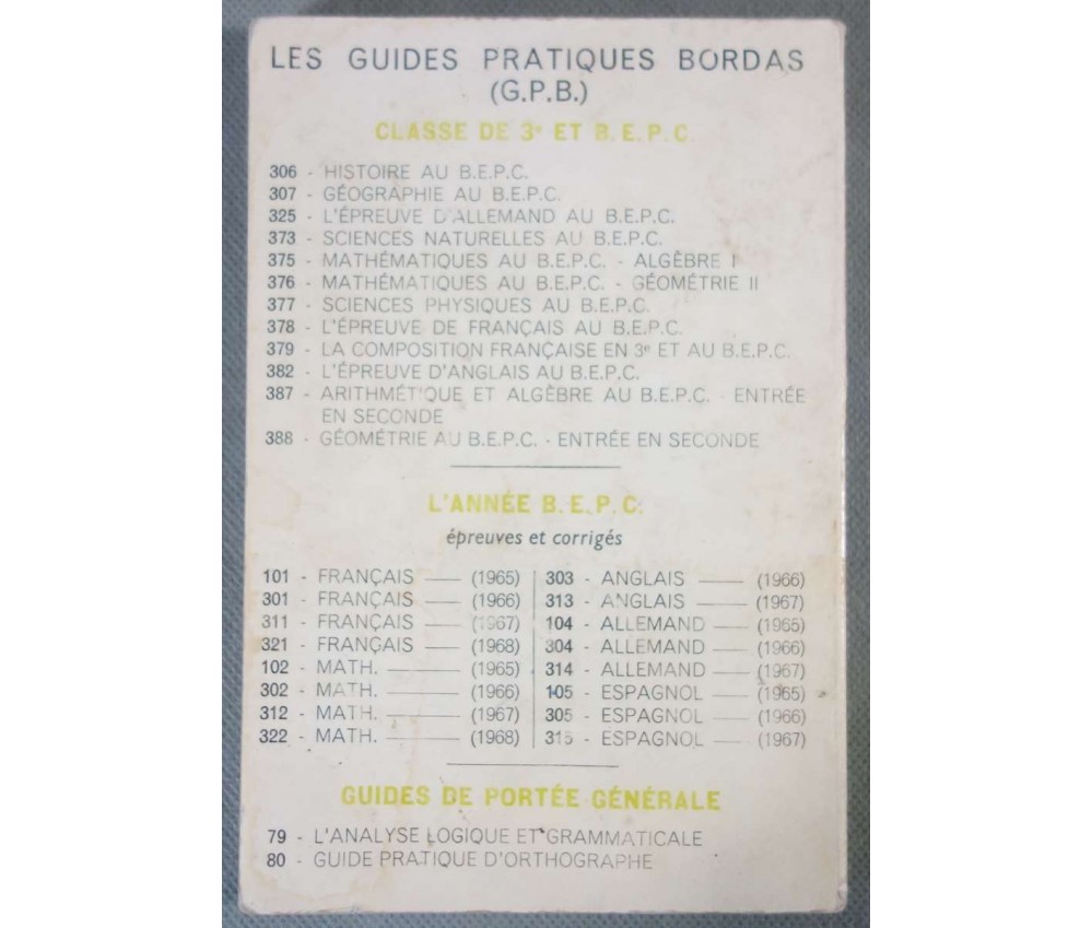 Voir nos visuels - Ed. Bordas, 192p + XVI planches, 1968, prog de 1961. Livre en état, intérieur propre mais jauni avec de rares annotations au crayon, mais usure des bords, coins et coiffes, plats tachés et une étiquette sur le plat avant. Envoi rapide et soigné!(A3) Nombreux ouvrages scolaires en stock...
