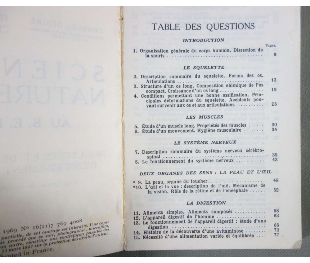 Sciences naturelles - bepc - Illustré -Ed. Bordas, 192p + XVIplanches, 1968, prog de 1961