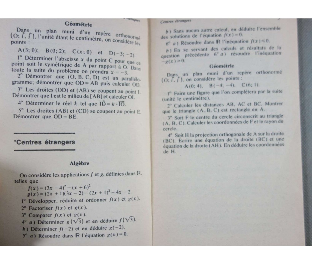 Annales du Brevet des Collèges - Mathématiques - 1982 - Ed. Vuibert, 64 pages