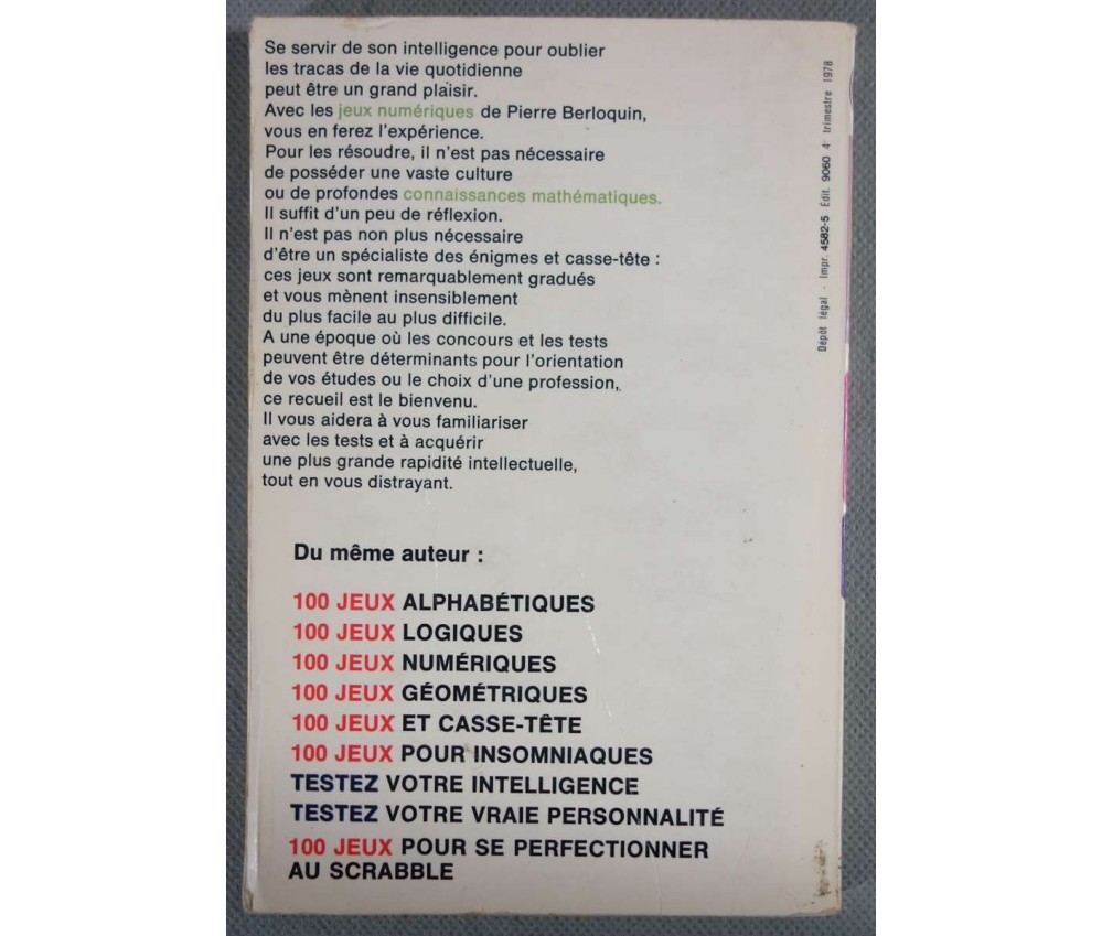 100 jeux numériques - P. Berloquin - Ed. Livre de poche - 1978 -