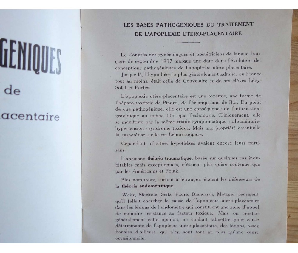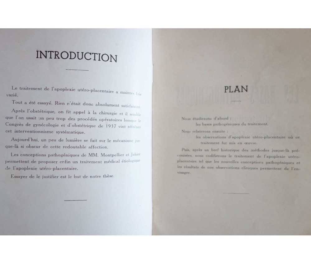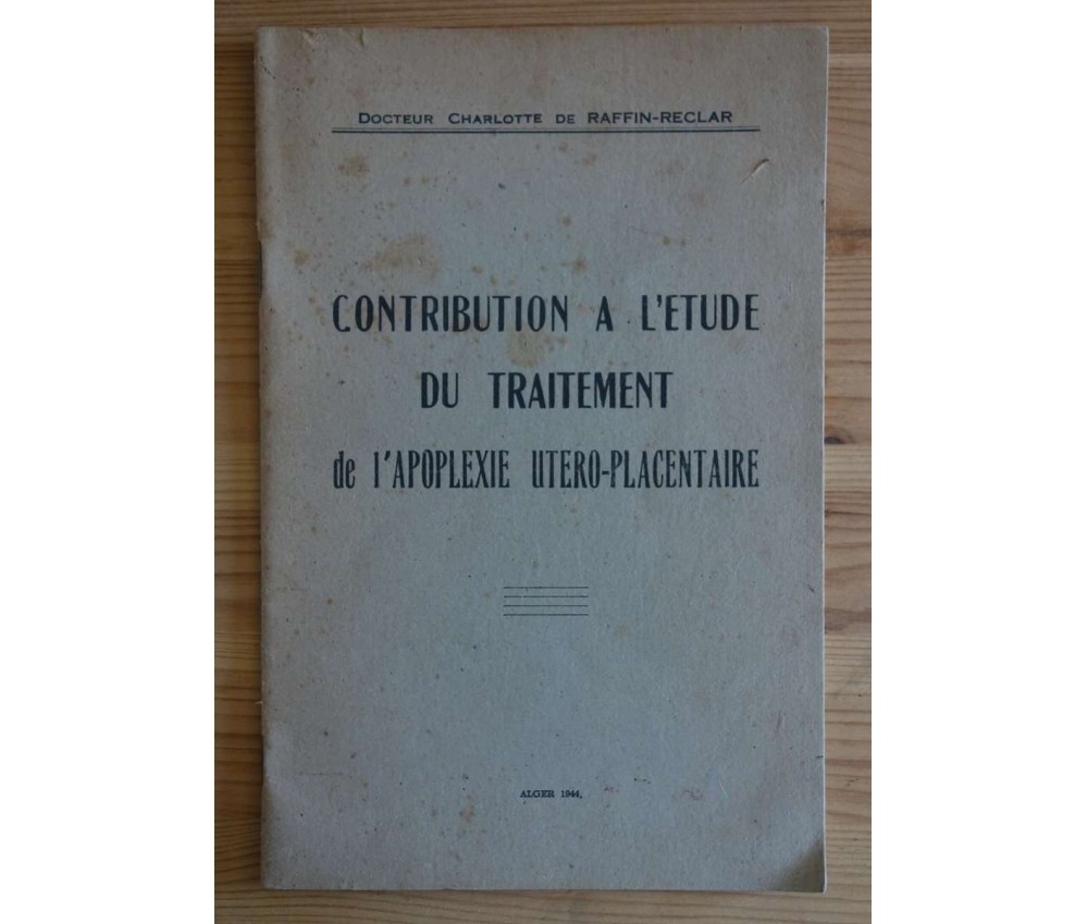 Contribution à l'étude du traitement de l'apoplexie utéro-placentaire - Dr Charlotte de Raffin-Reclar - 1944 - 43 pages, 1944, thèse.