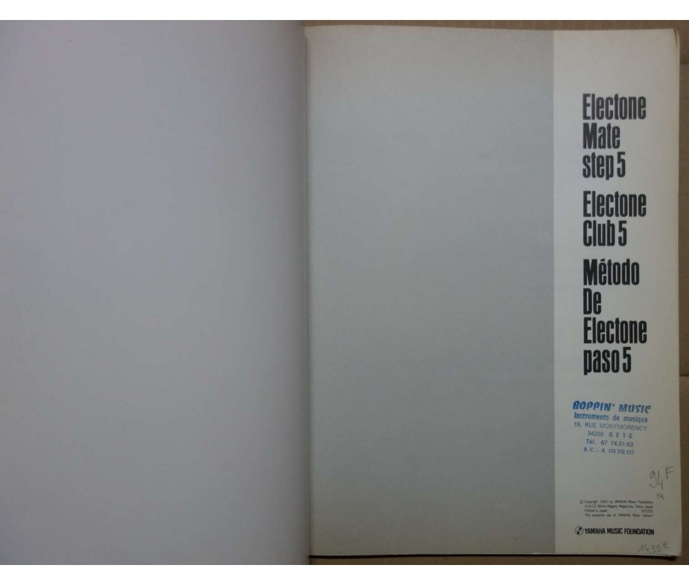 Electone club 5/ Electone mate step 5/ método de electone paso 5, Editions Yamaha Music Fondation, 63 pages. Trilingue (fr, en, es).