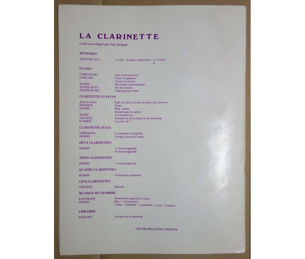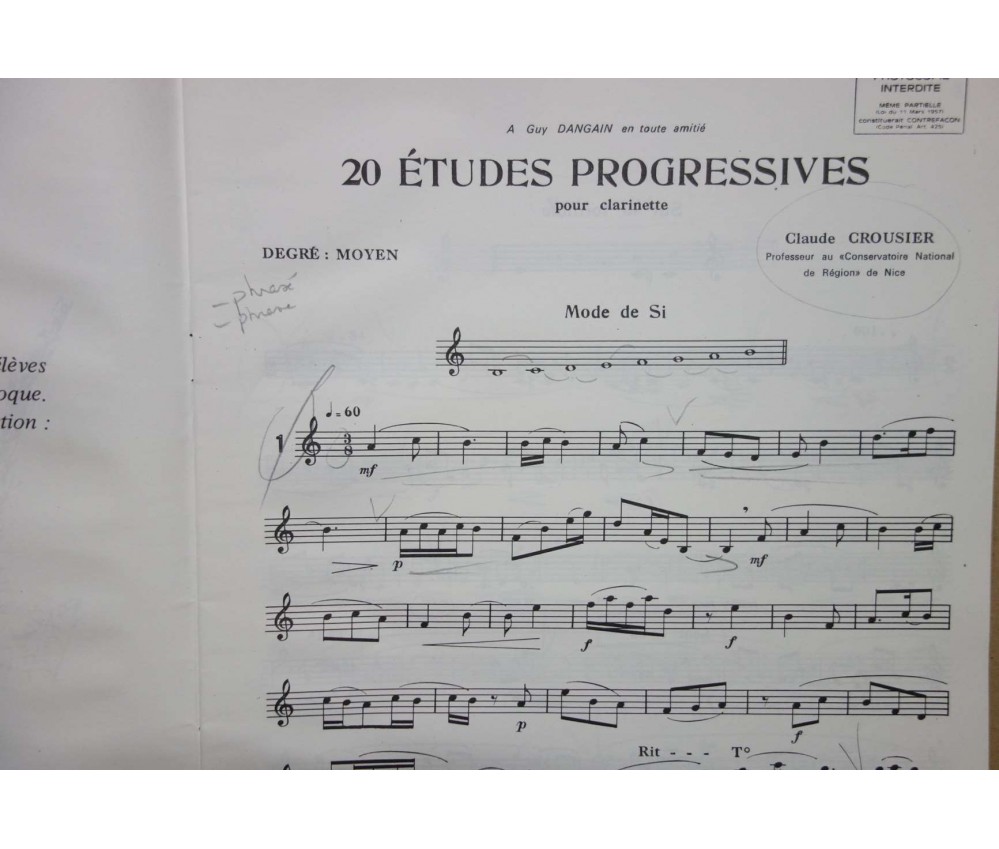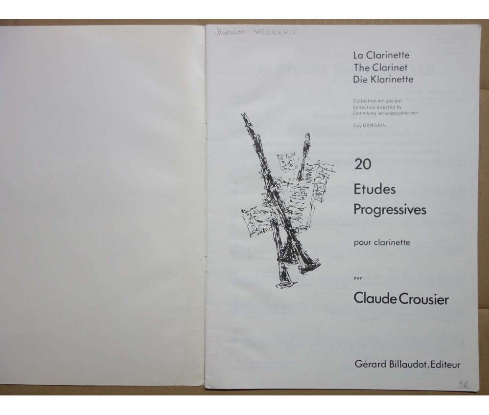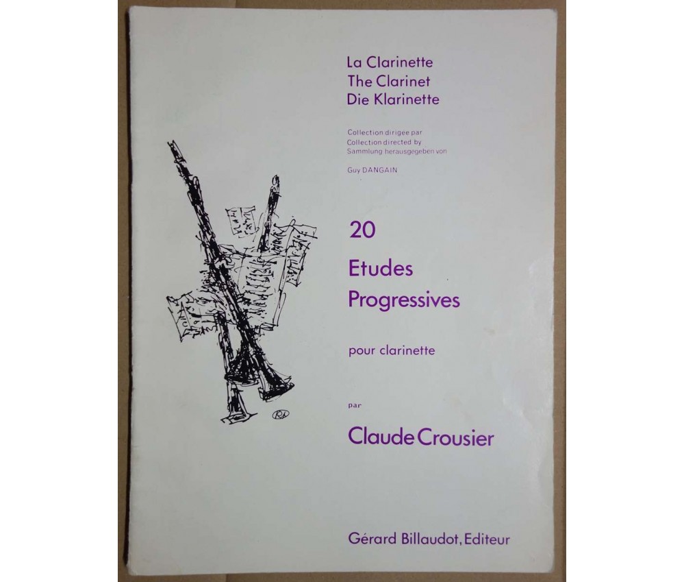 20 études progressives pour clarinette - Collection Dangain - Claude Crousier - Ed G. Billaudot, 20 p, 1981, ref. G.3203B -